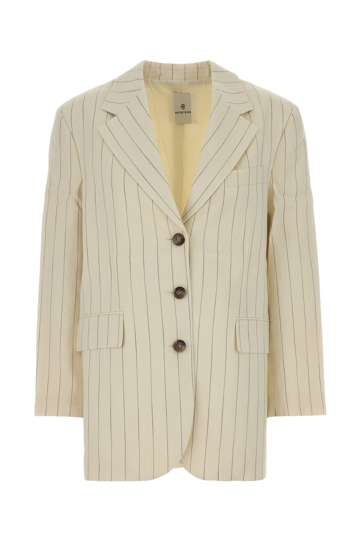 Blazer realized in viscose blend characterized bye pin-striped embroidery on the entire surface.