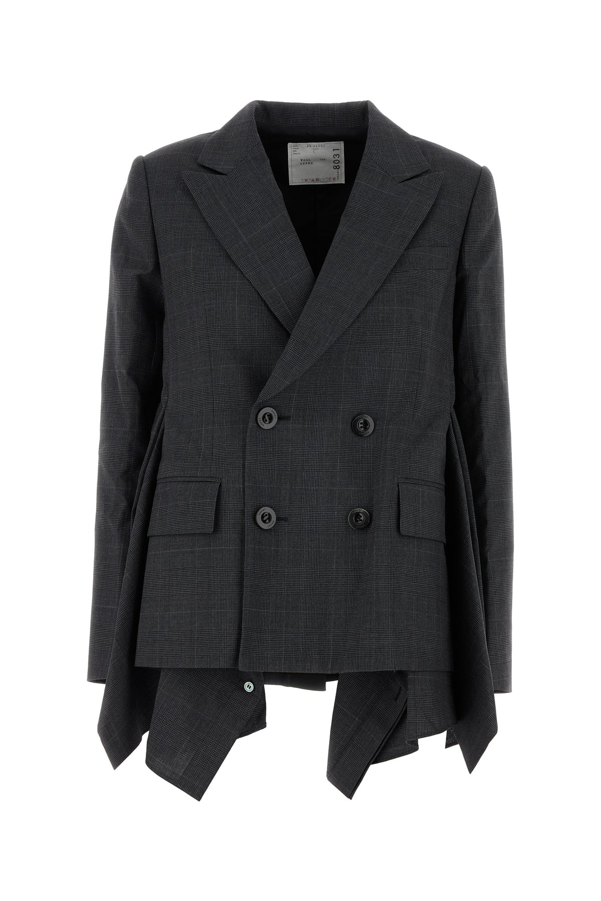 Blazer realized in pure wool characterized by checked embroidery on the entire surface.