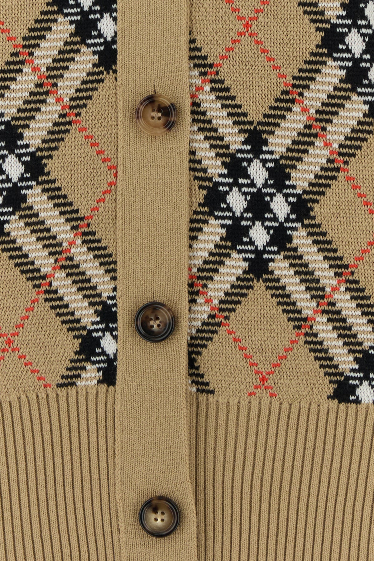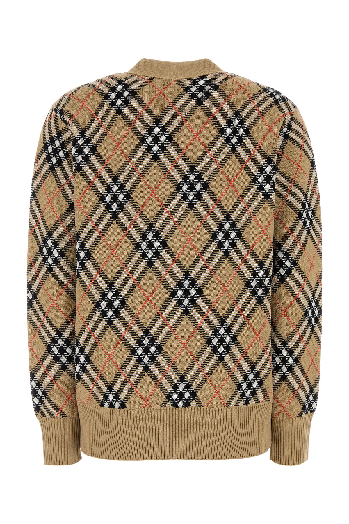 Cardigan realized in wool blend characterized by Burberry Check motif embroidery on the entire surface.