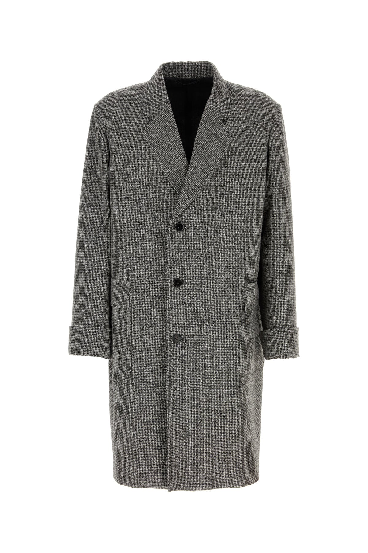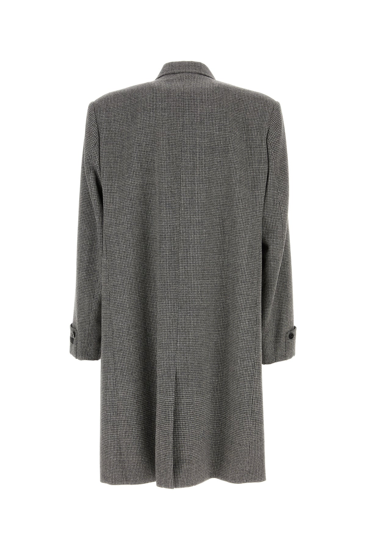 Coat realized in virgin wool and alpaca characterized by houndstooth motif embroidery on the entire surface.