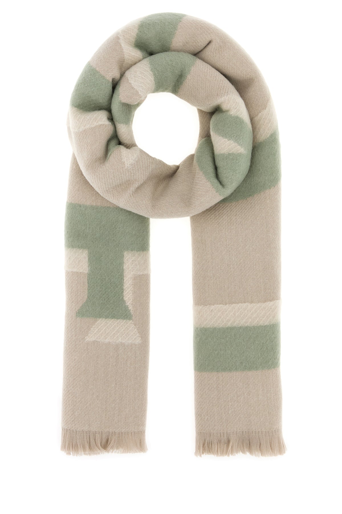 Reversible scarf realized in wool and cashmere characterized by embroidered logo.
