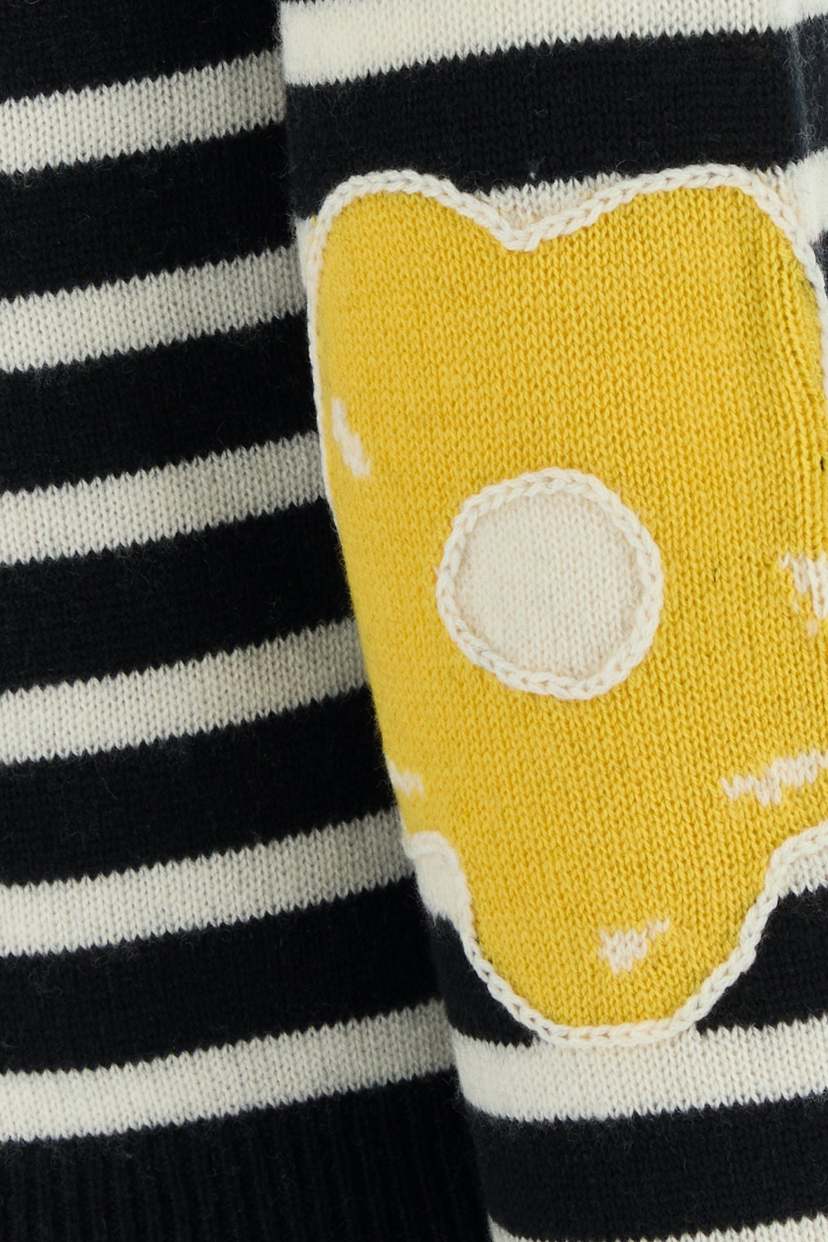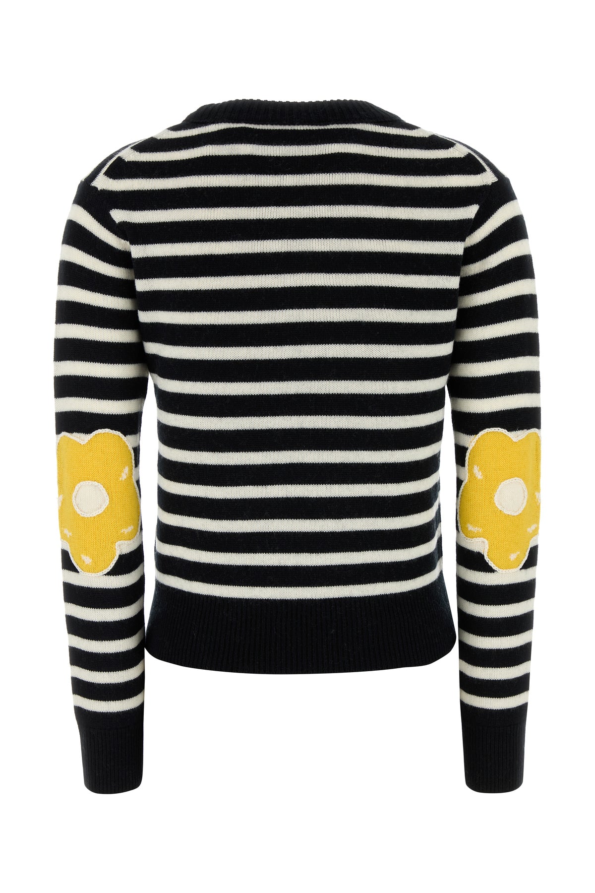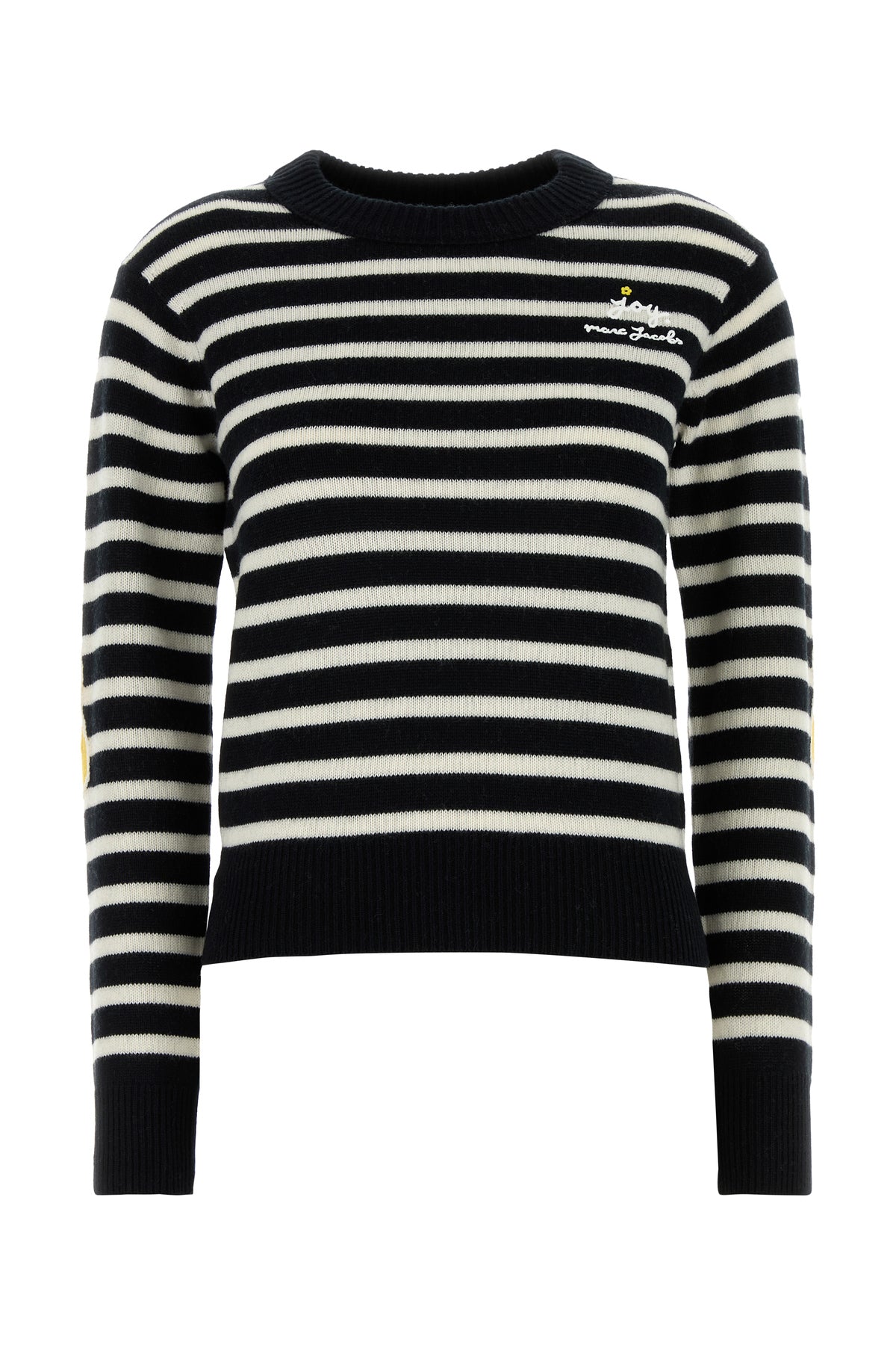 Sweater realized in wool and cashmere characterized by Joy embroidery on the chest, striped embroidery on the entire surface and Daisy embroidery on the elbows.