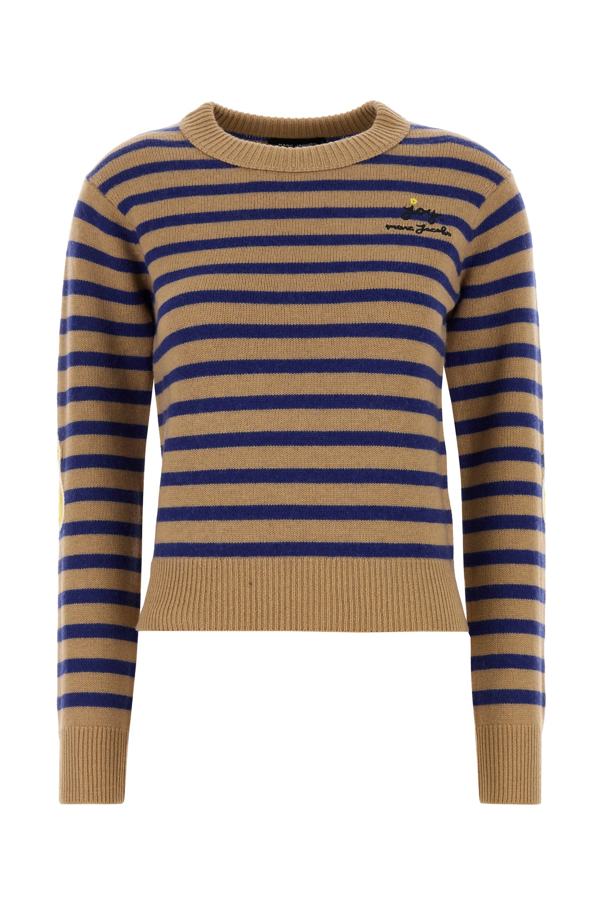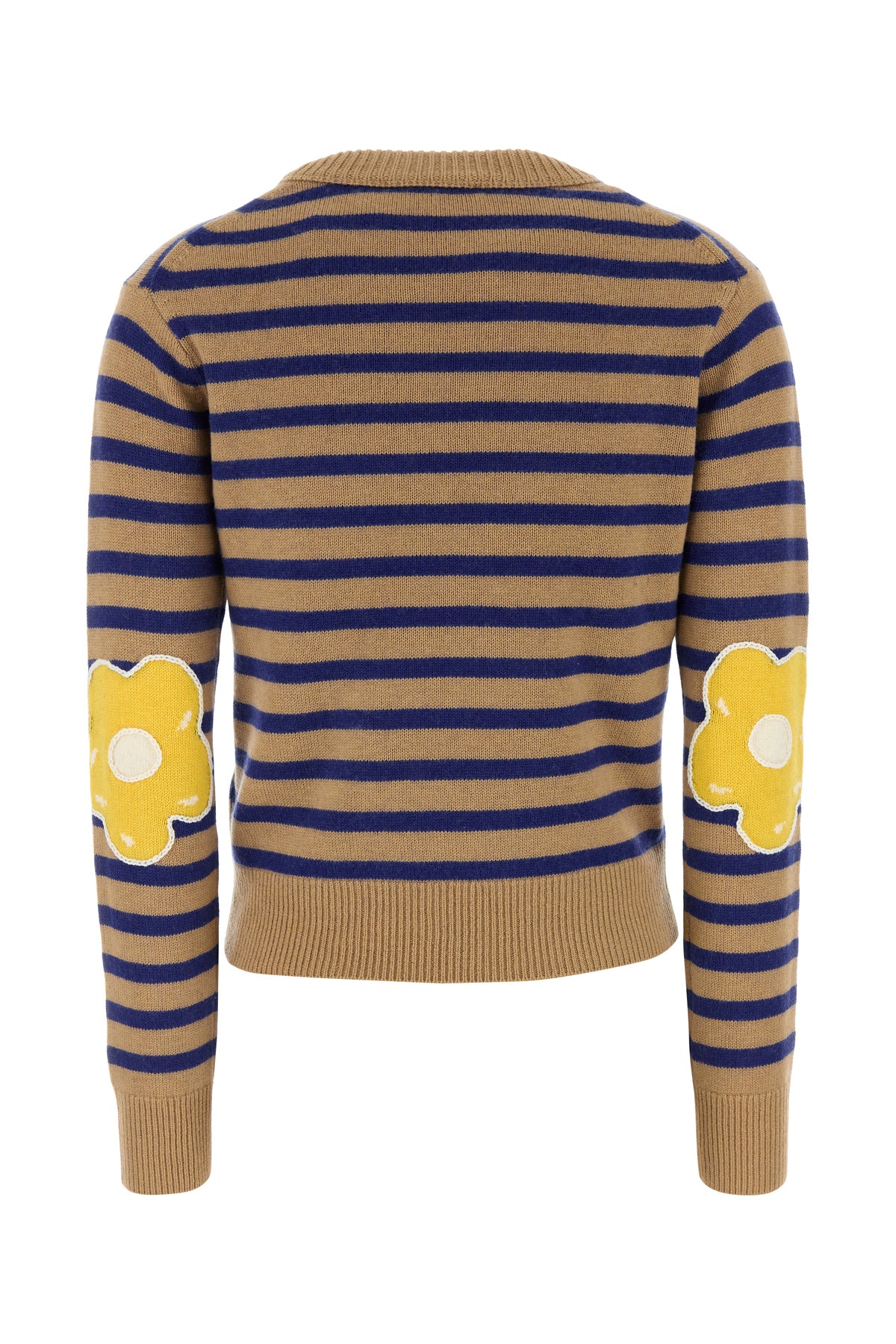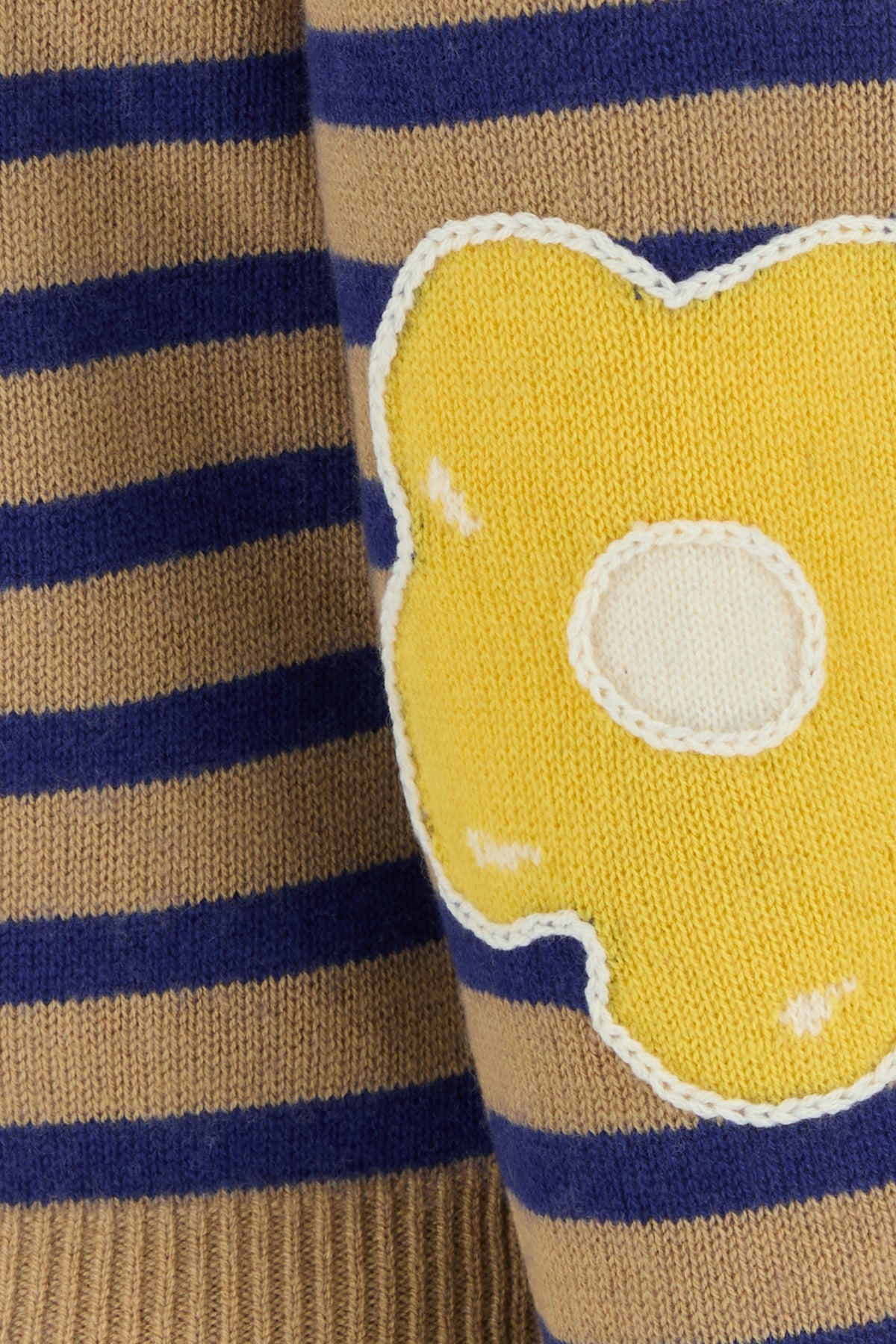 Sweater realized in wool and cashmere characterized by Joy embroidery on the chest, striped embroidery on the entire surface and Daisy embroidery on the elbows.