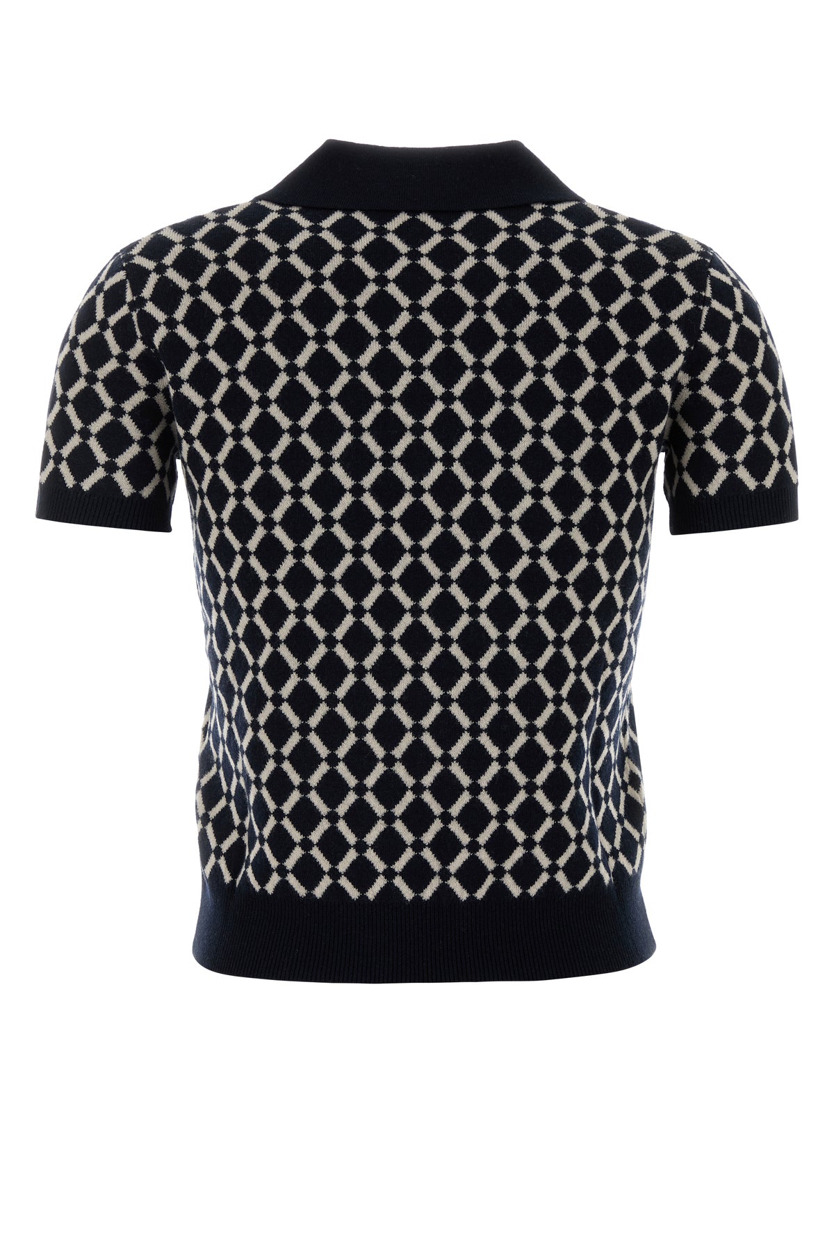 Polo shirt realized in pure wool characterized by checked embroidery on the entire surface.
