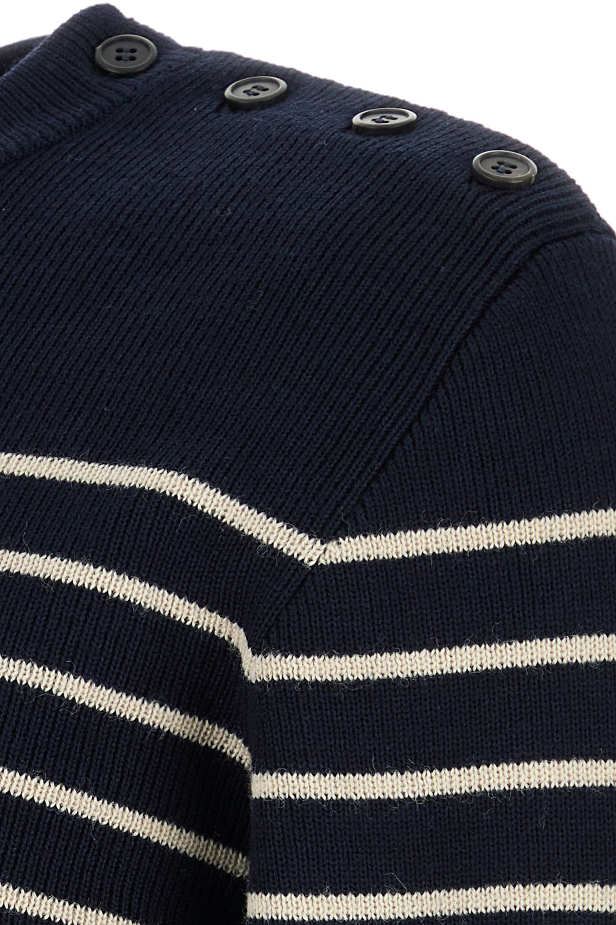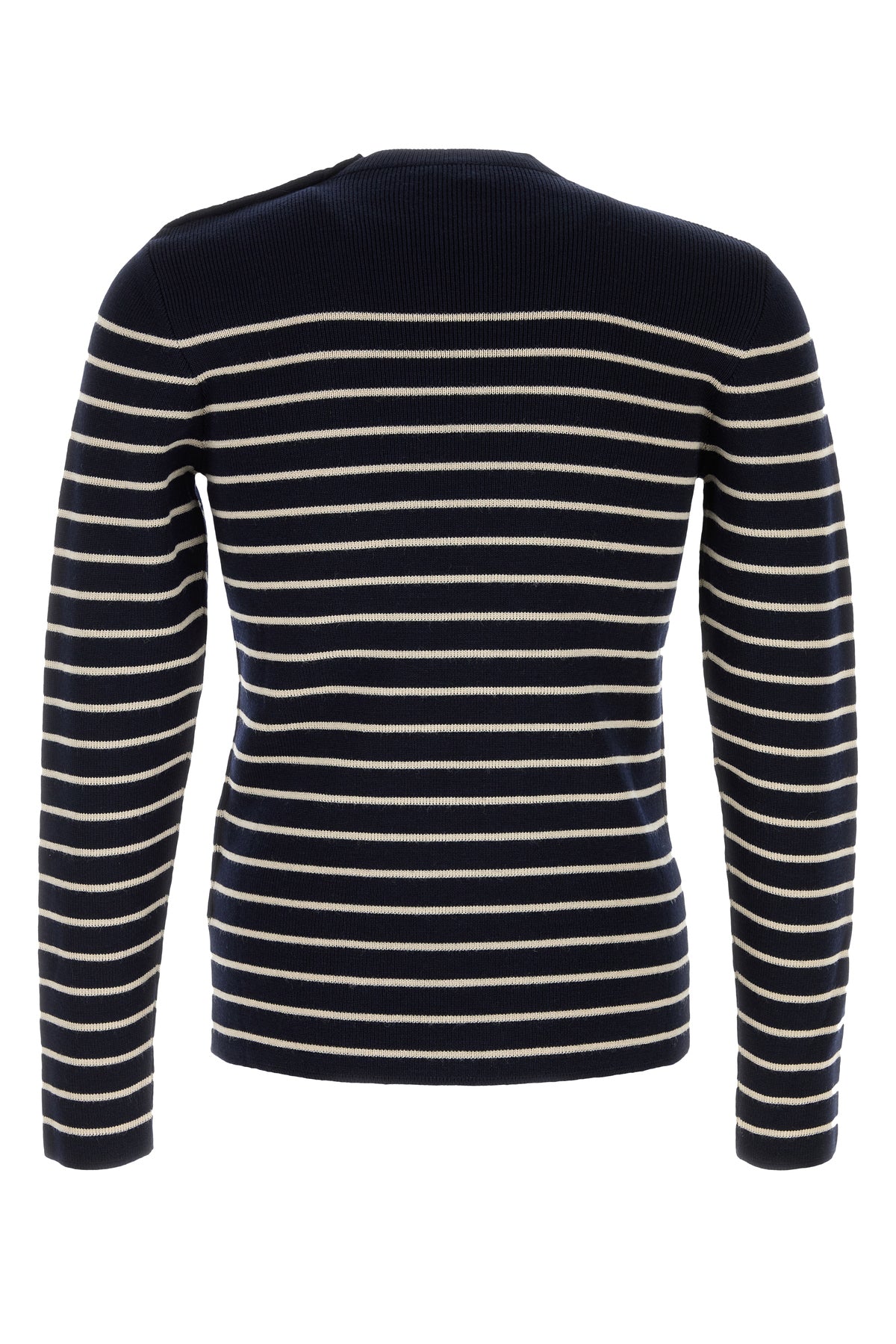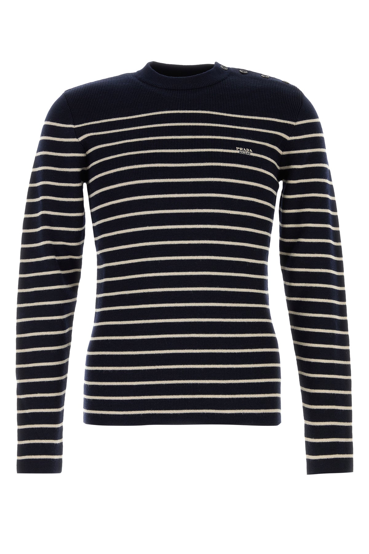 Sweater realized in pure virgin wool characterized by embroidered logo on the chest and striped embroidery on the entire surface.