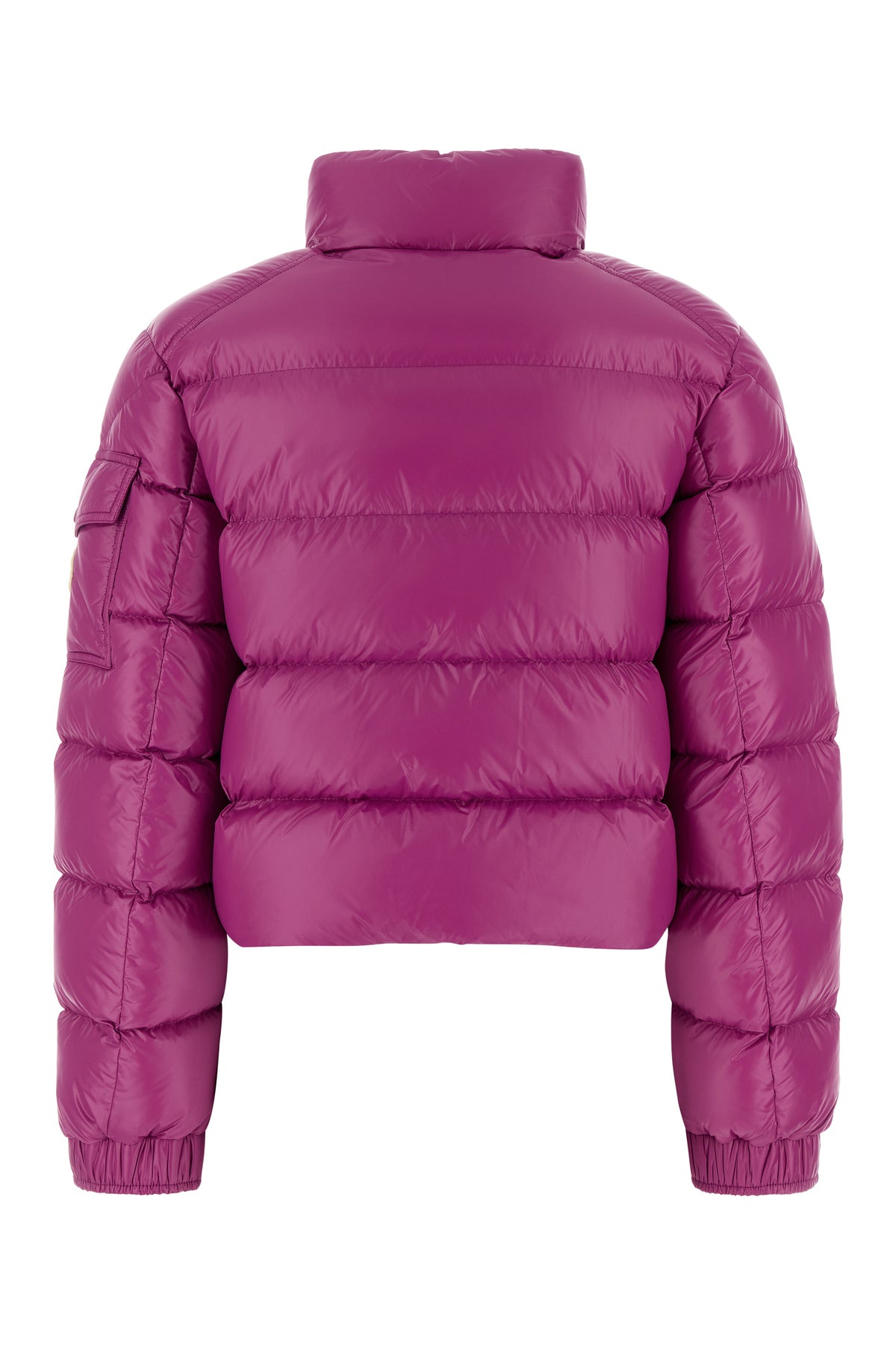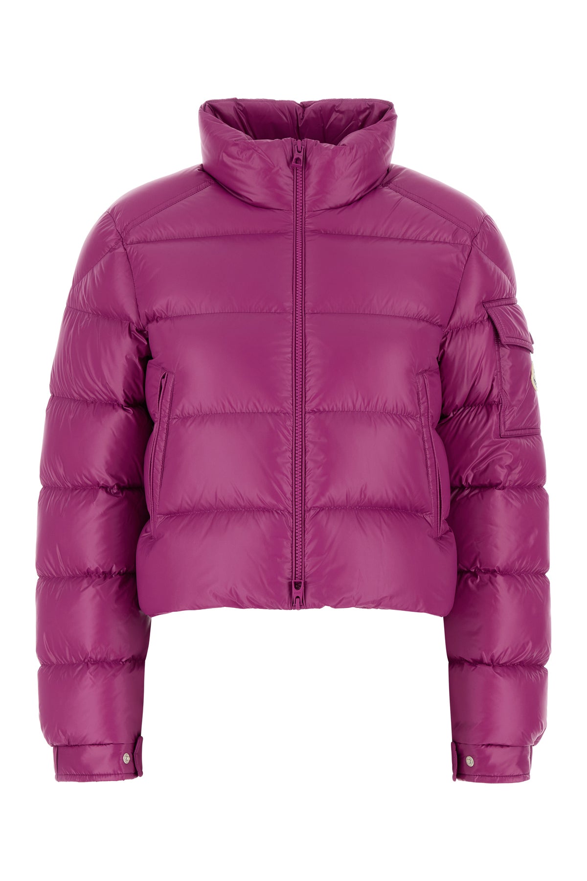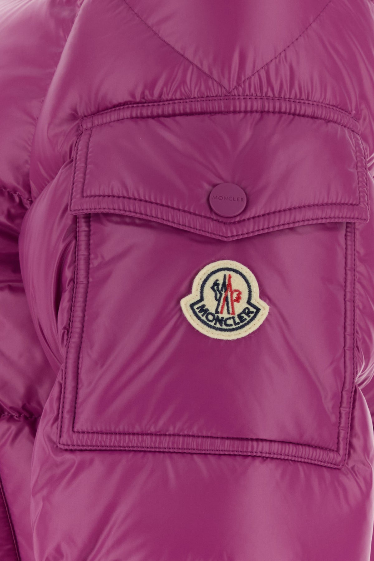 Down jacket realized in quilted nylon enriched by contrasting logoed patch on the sleeve.