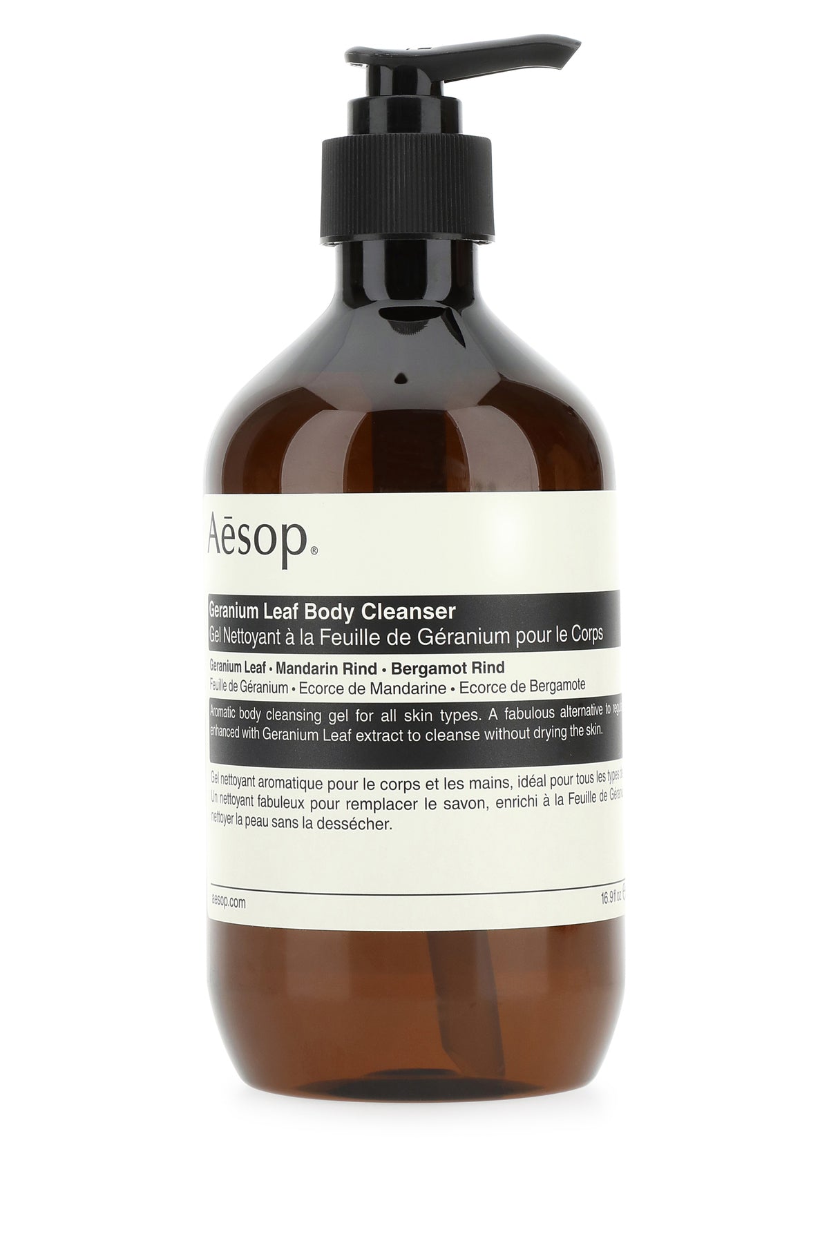 Body cleanser characterized by recycled plastic bottle enriched by contrasting label.