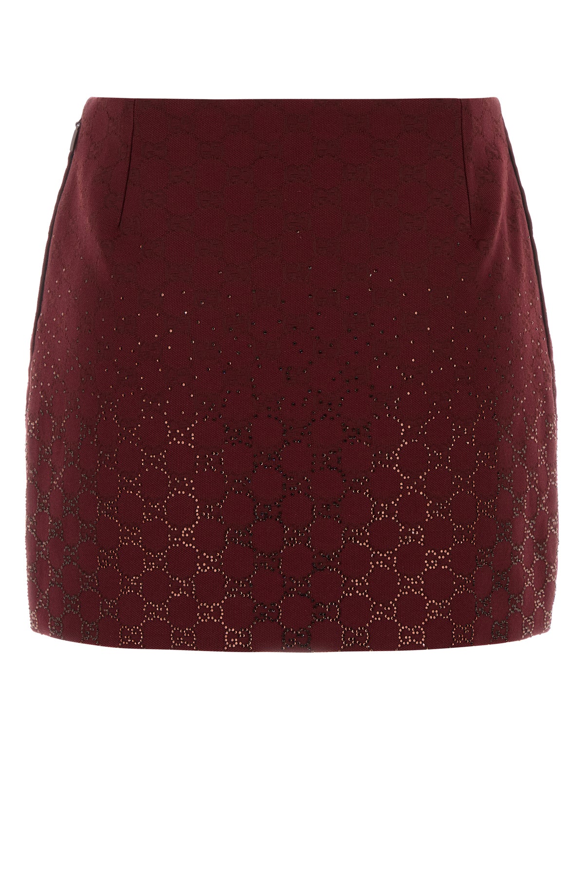Mini skirt realized in GG fabric enriched by rhinestones on the hemline.
