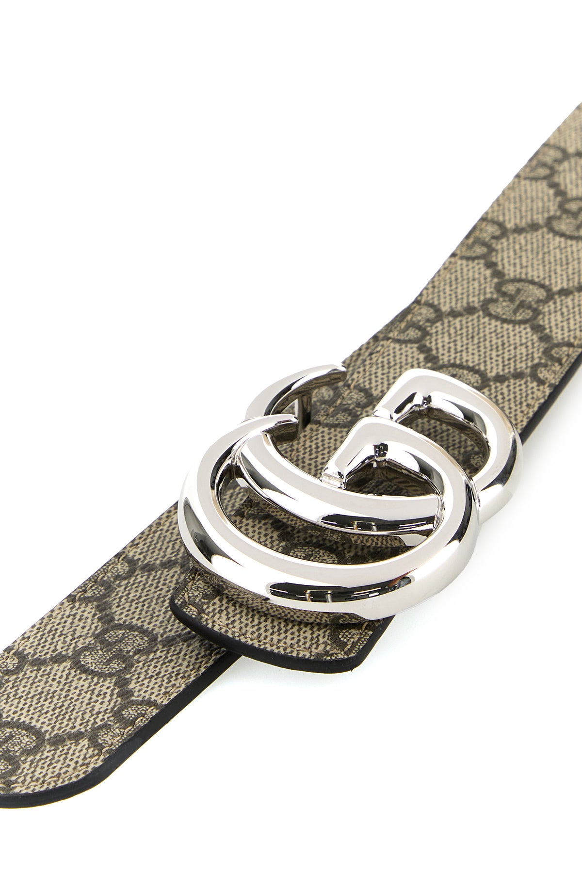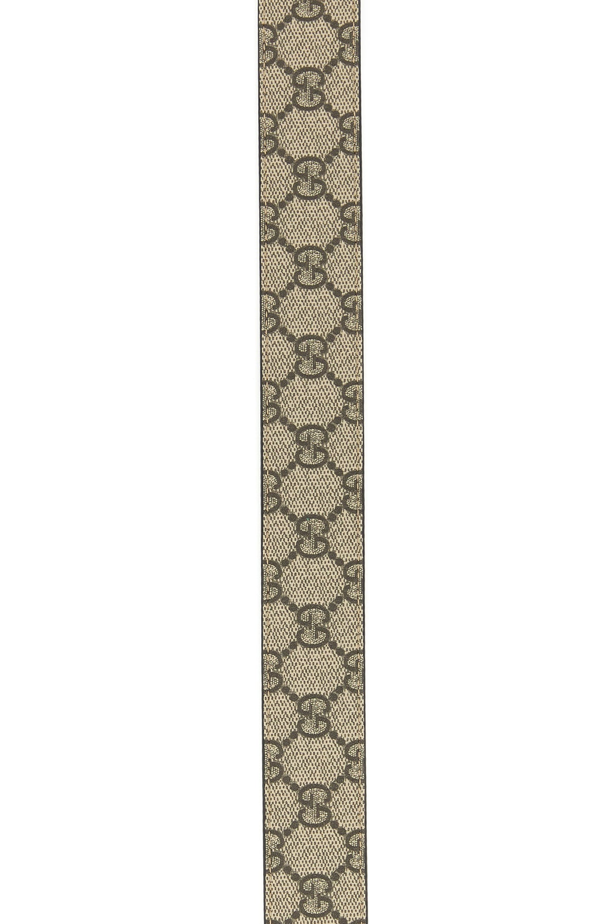 Reversible belt realized in coated GG fabric enriched by metal GG buckle.