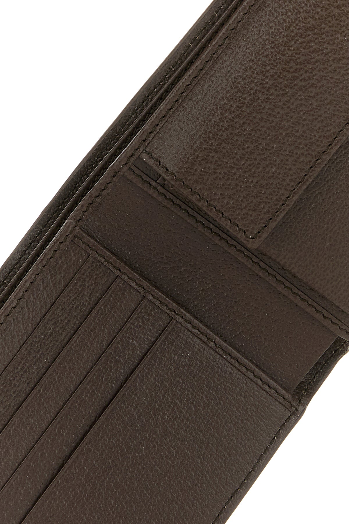 - Interior with two bill compartments, a coin pocket, two slit pockets and four credit card slots