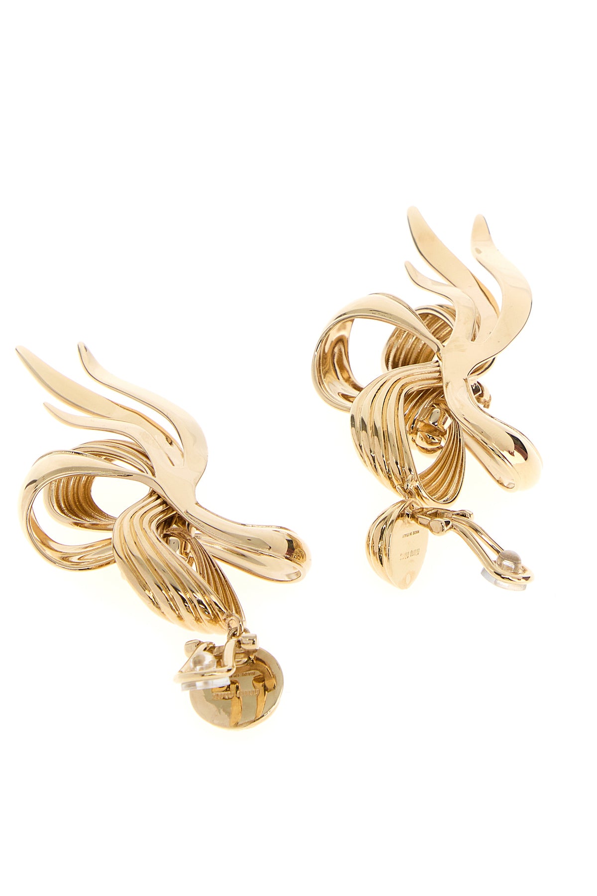 Earring realized in gold-tone pleated metal.