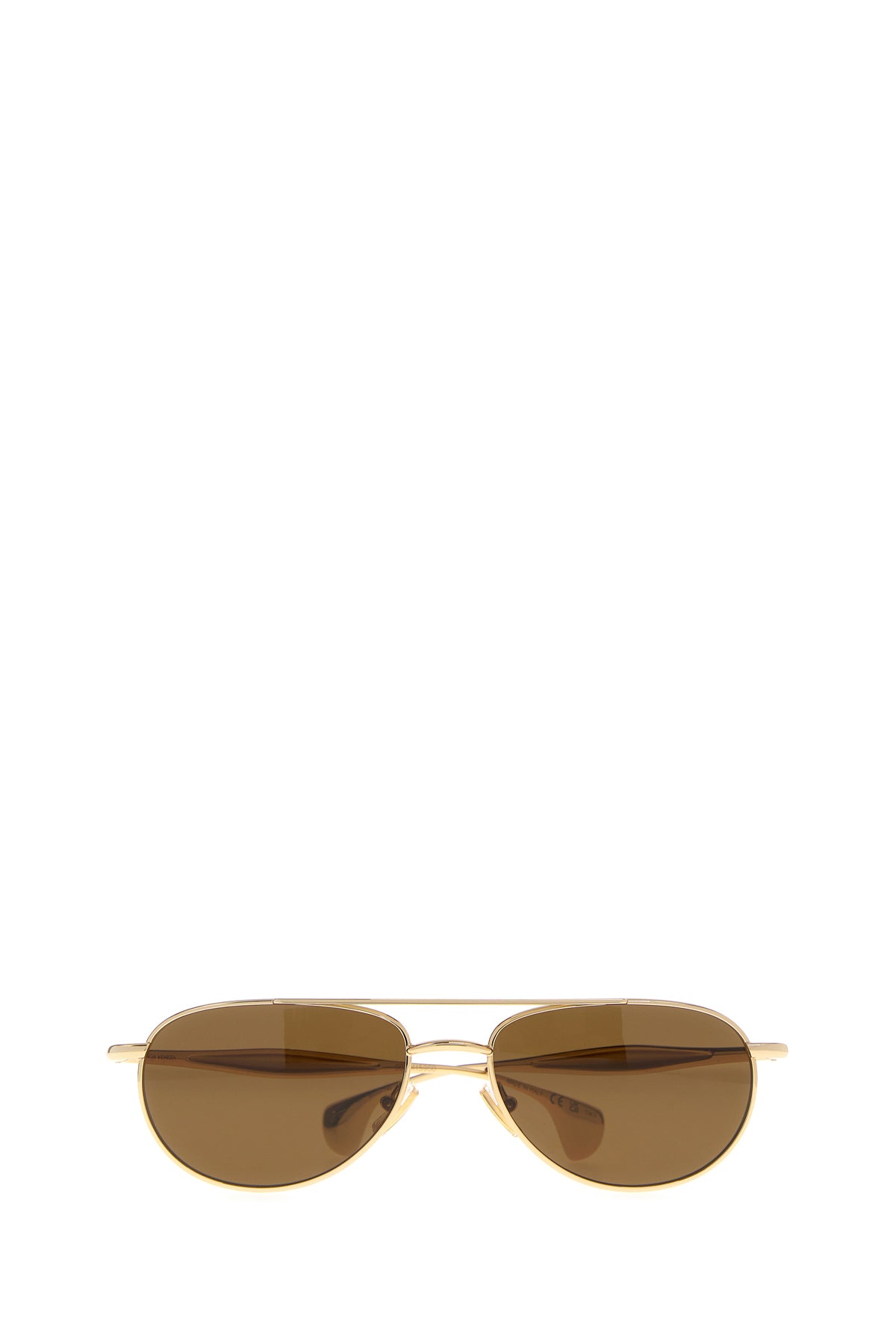 Sunglasses realized in metal characterized by embossed logo on the arms.