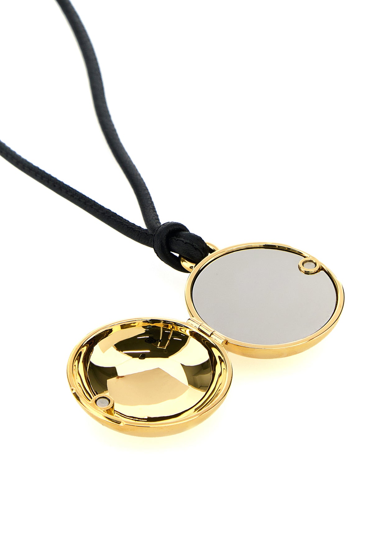 Keyring realized in gold-tone pleated metal characterized by embossed Anagram.