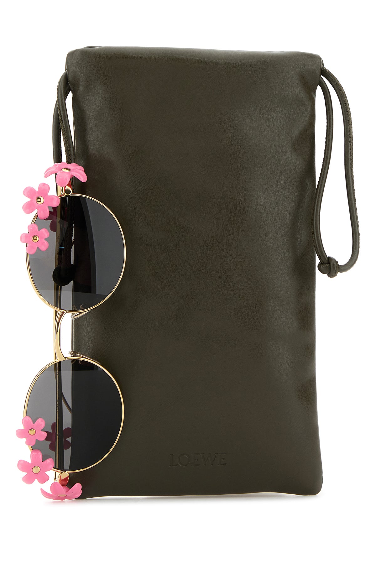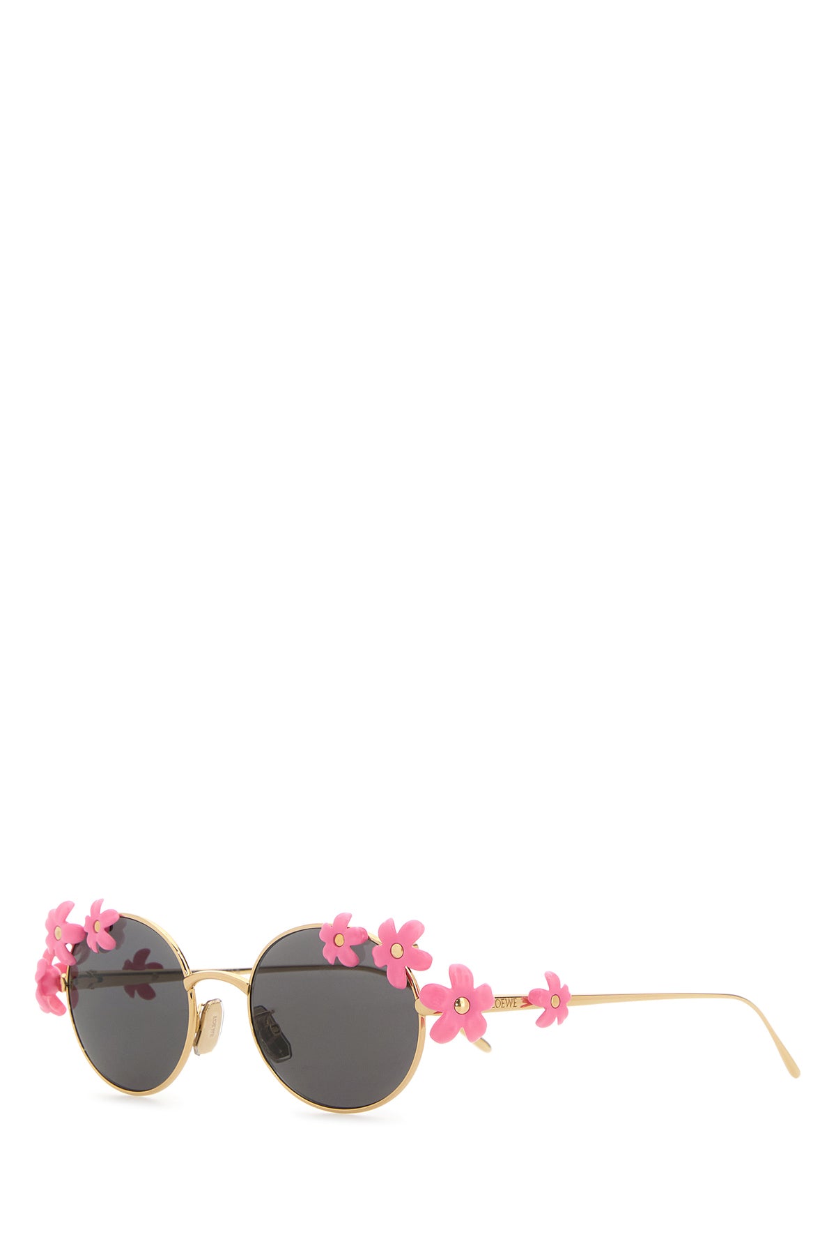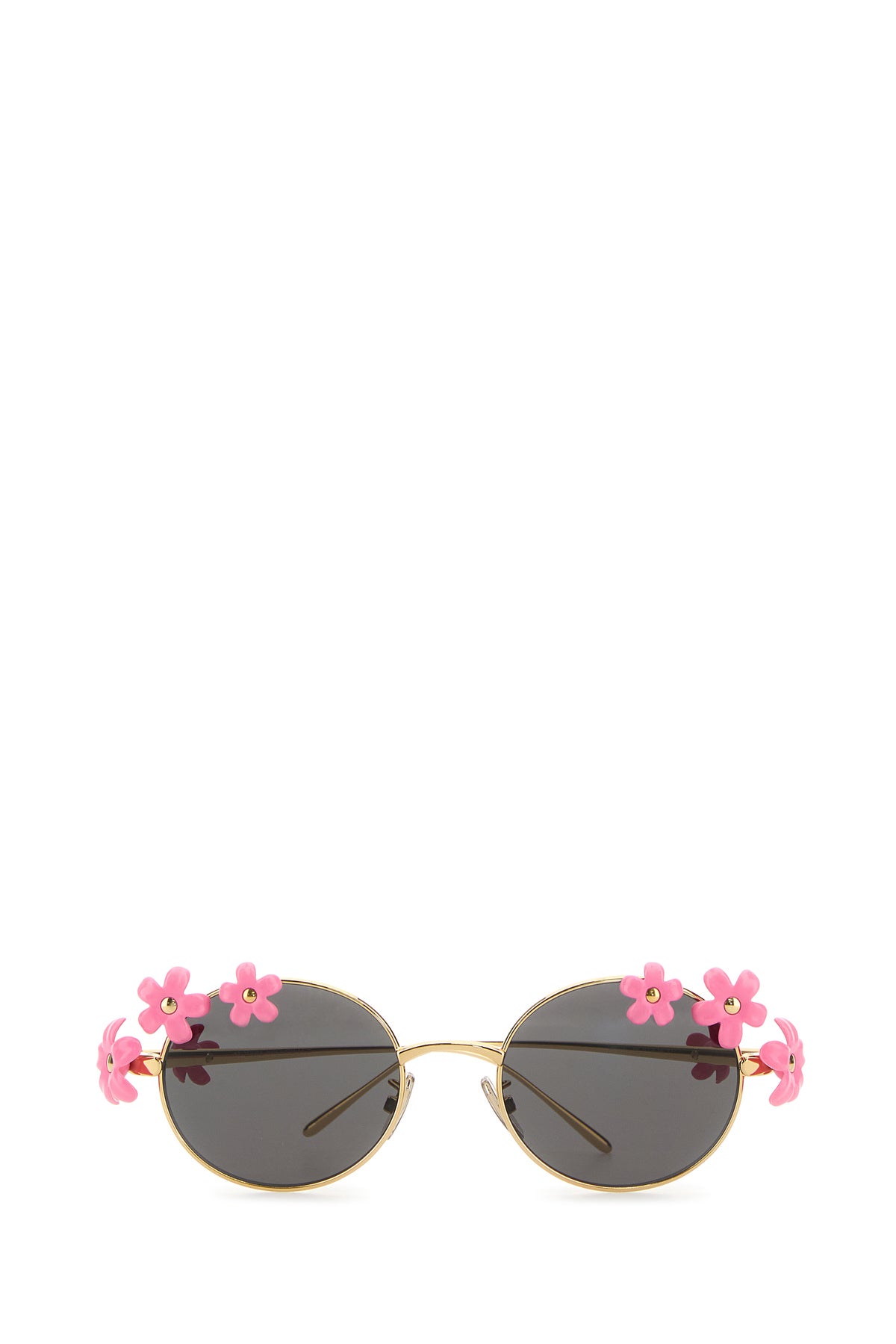 Sunglasses realized in metal characterized by embossed logo on the arms enriched by floral patches at the front.