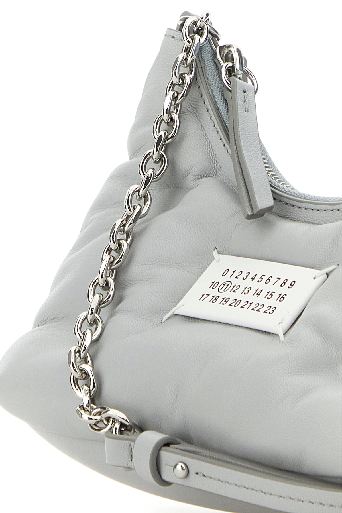 - Adjustable metal chain shoulder strap with tonal leather shoulder pad