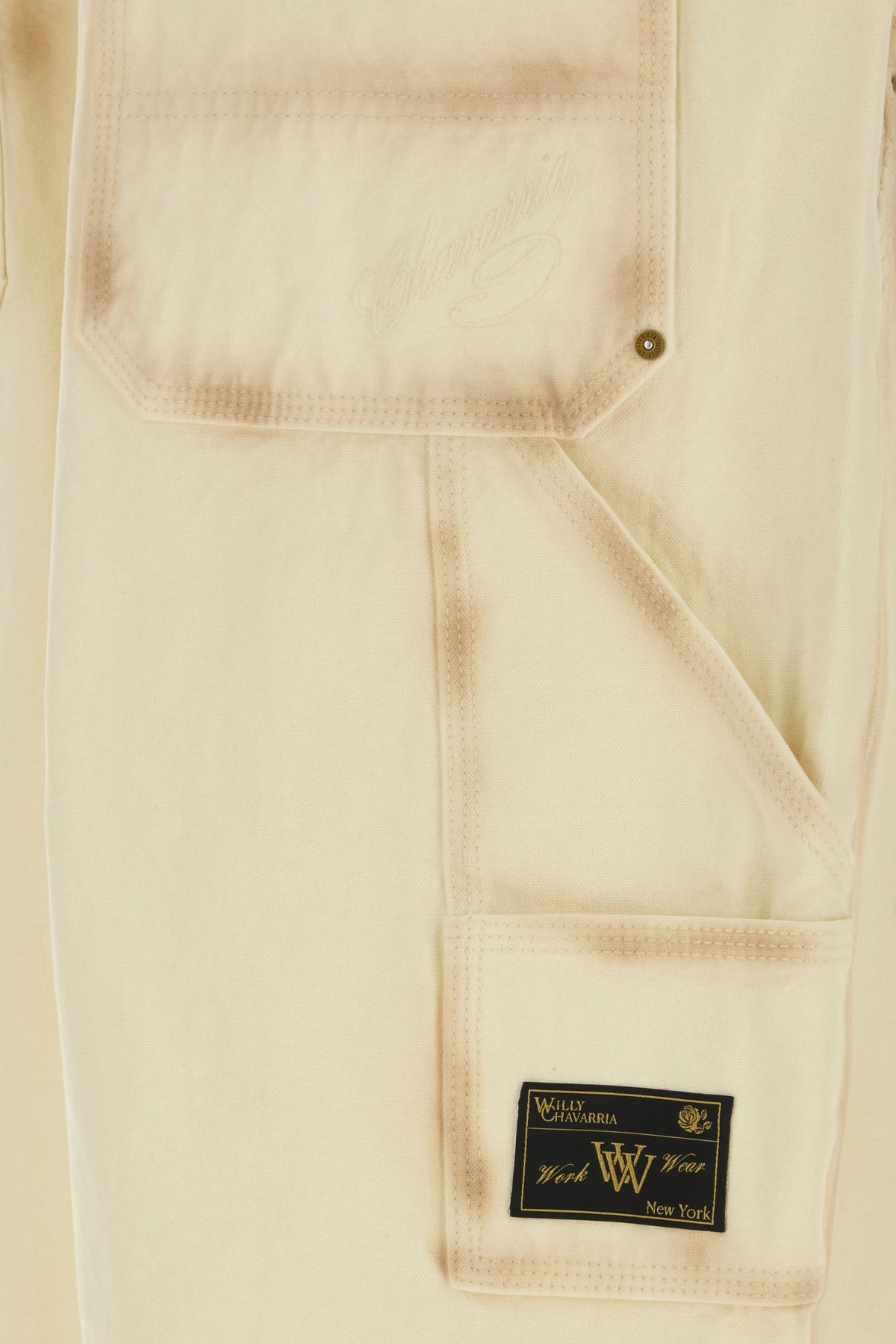 Wide-leg pant realized in vintage-effect pure cotton characterized by tonal Chavarria embroidery and logoed label at the back.