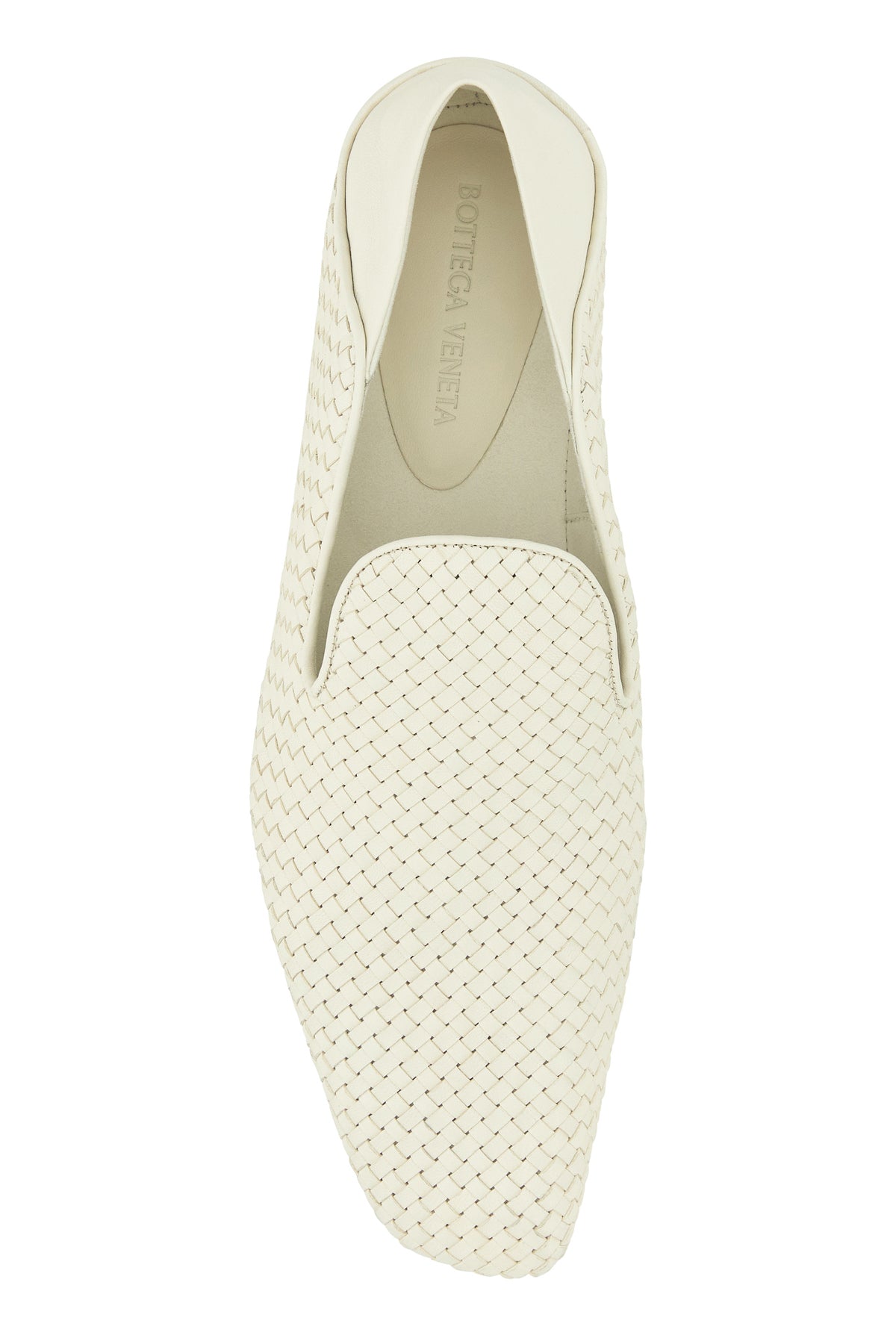 Slippers realized in leather characterized by iconic Intrecciato motif on the entire surface.