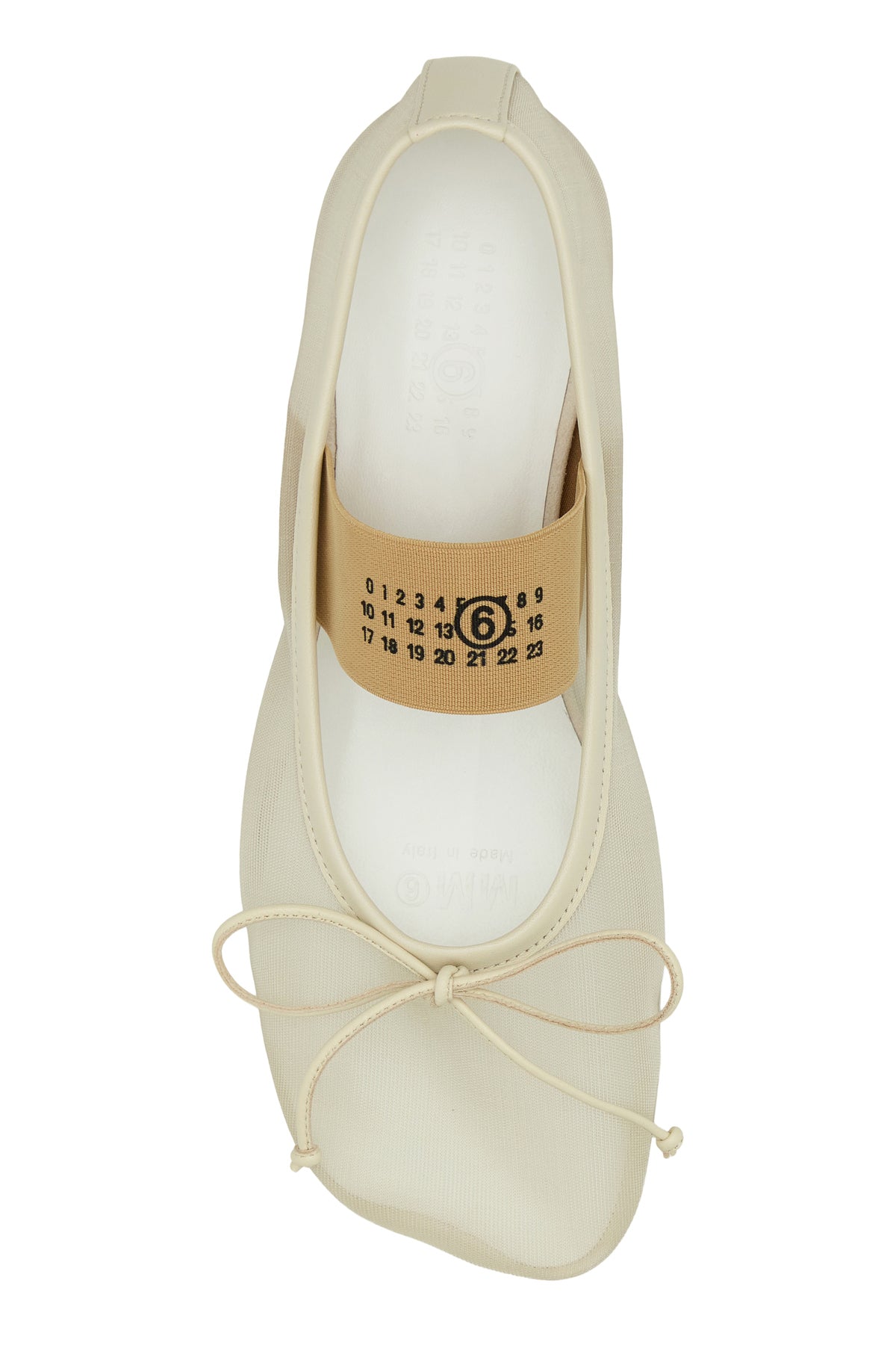 Ballerinas realized in mesh characterized by printed logo on the elastic strap on the instep.