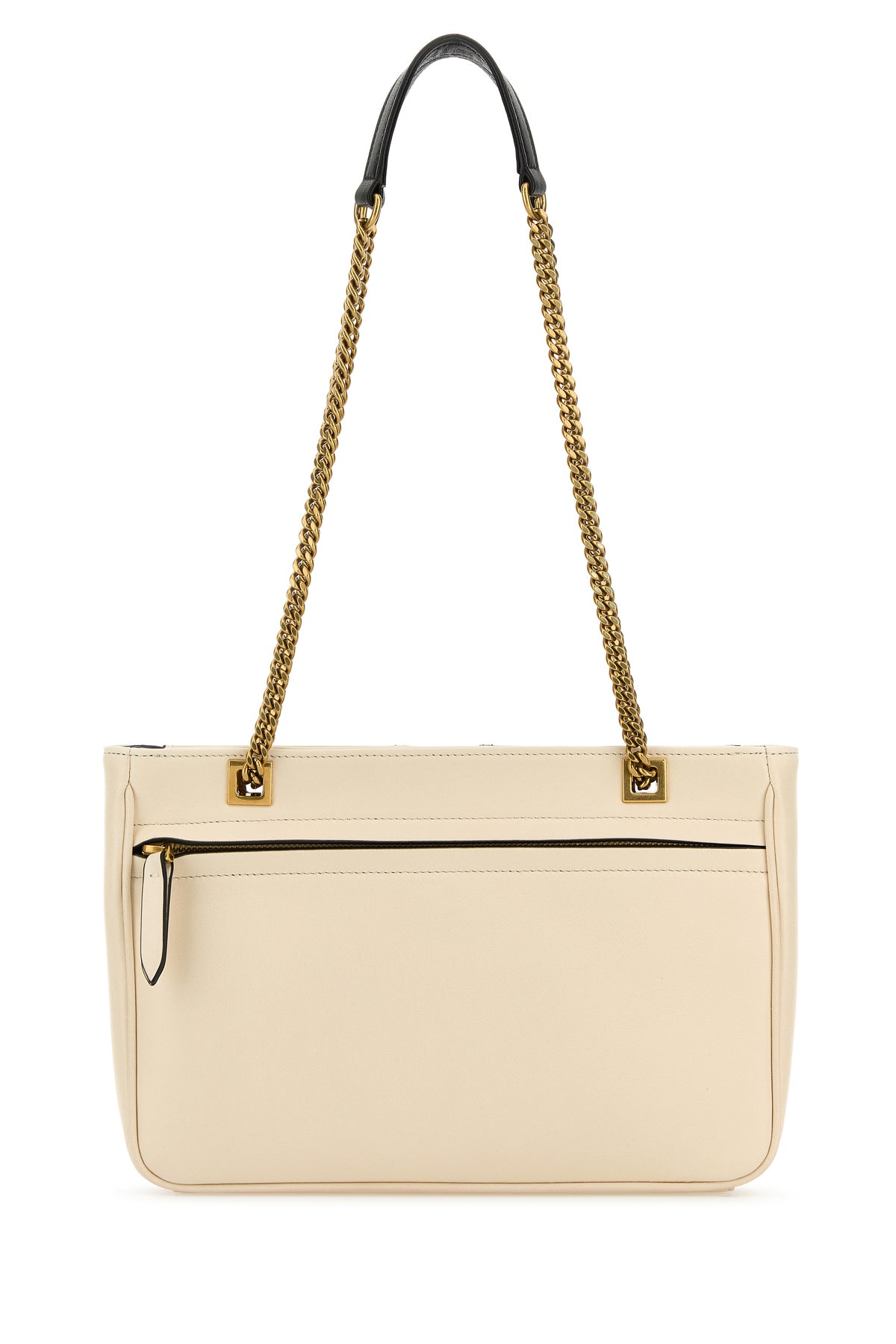 - Metal chain shoulder strap with leather shoulder pad that can be worn single or double
