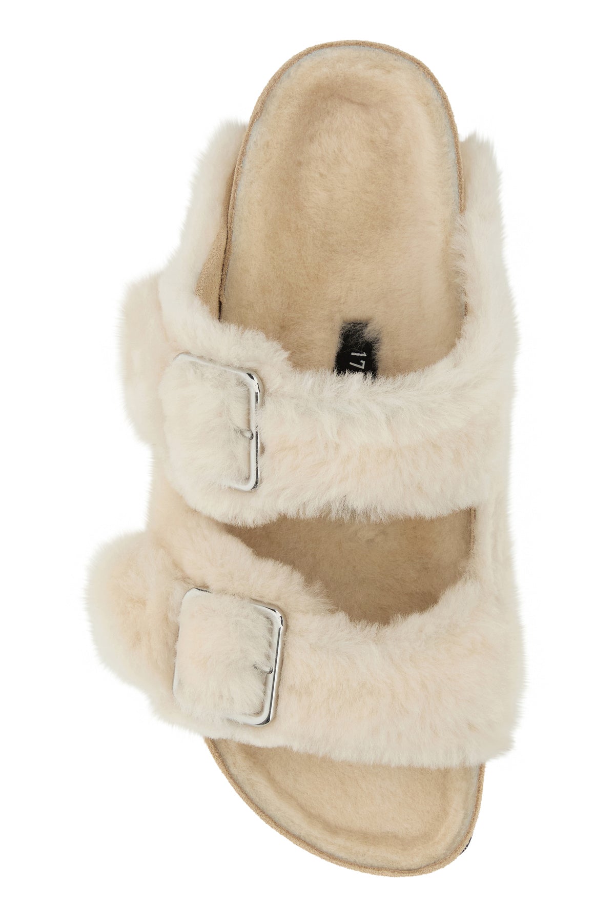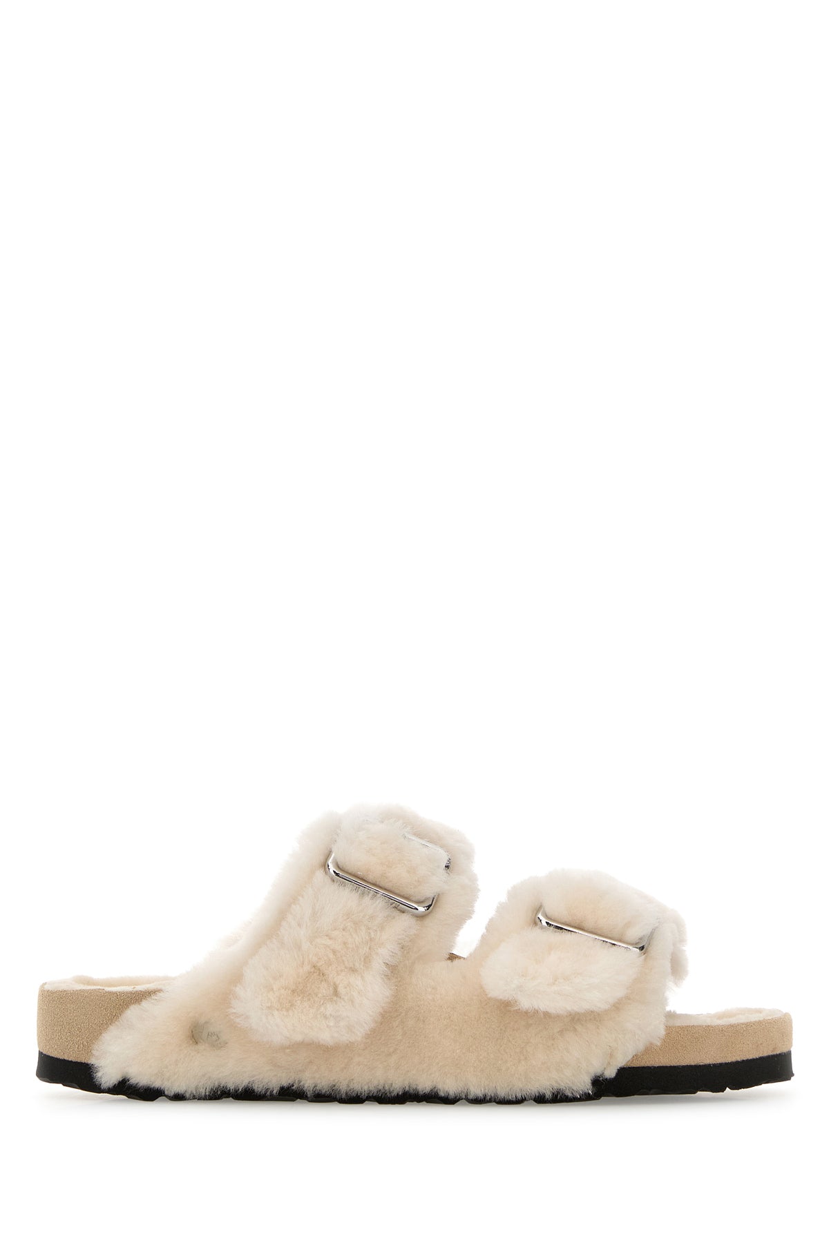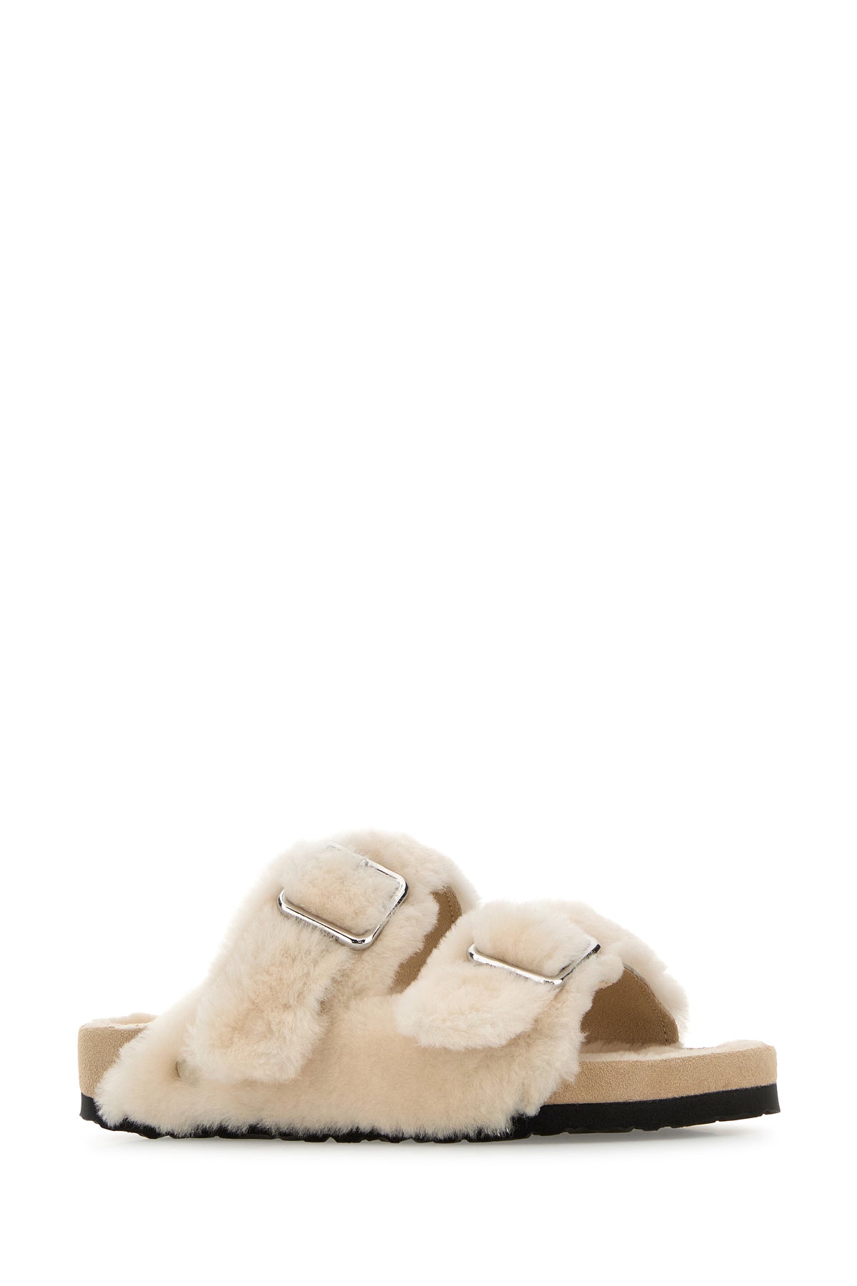 Slippers realized in shearling enriched by logoed metal detail on the side.