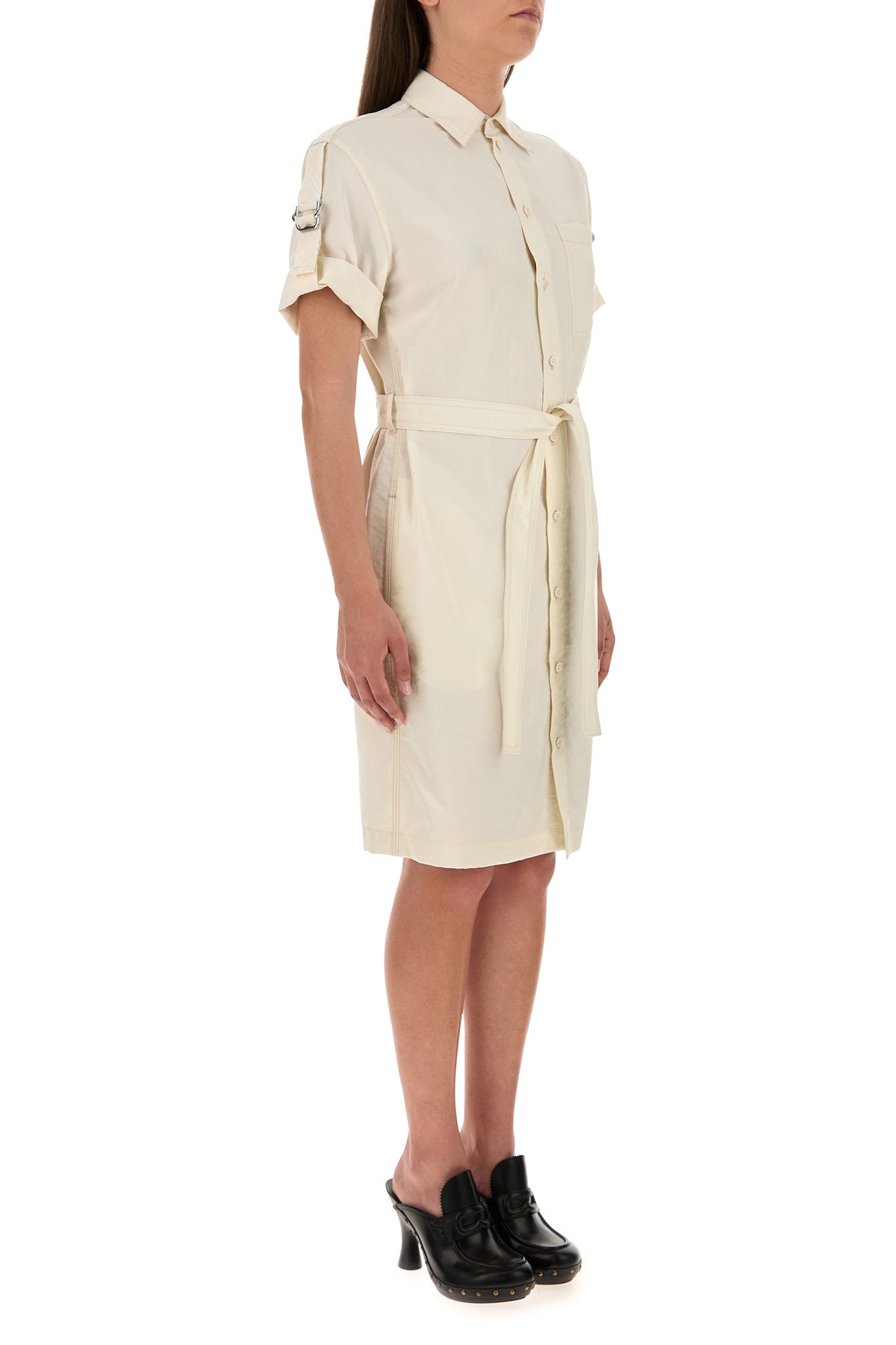Ivory silk blend shirt dress