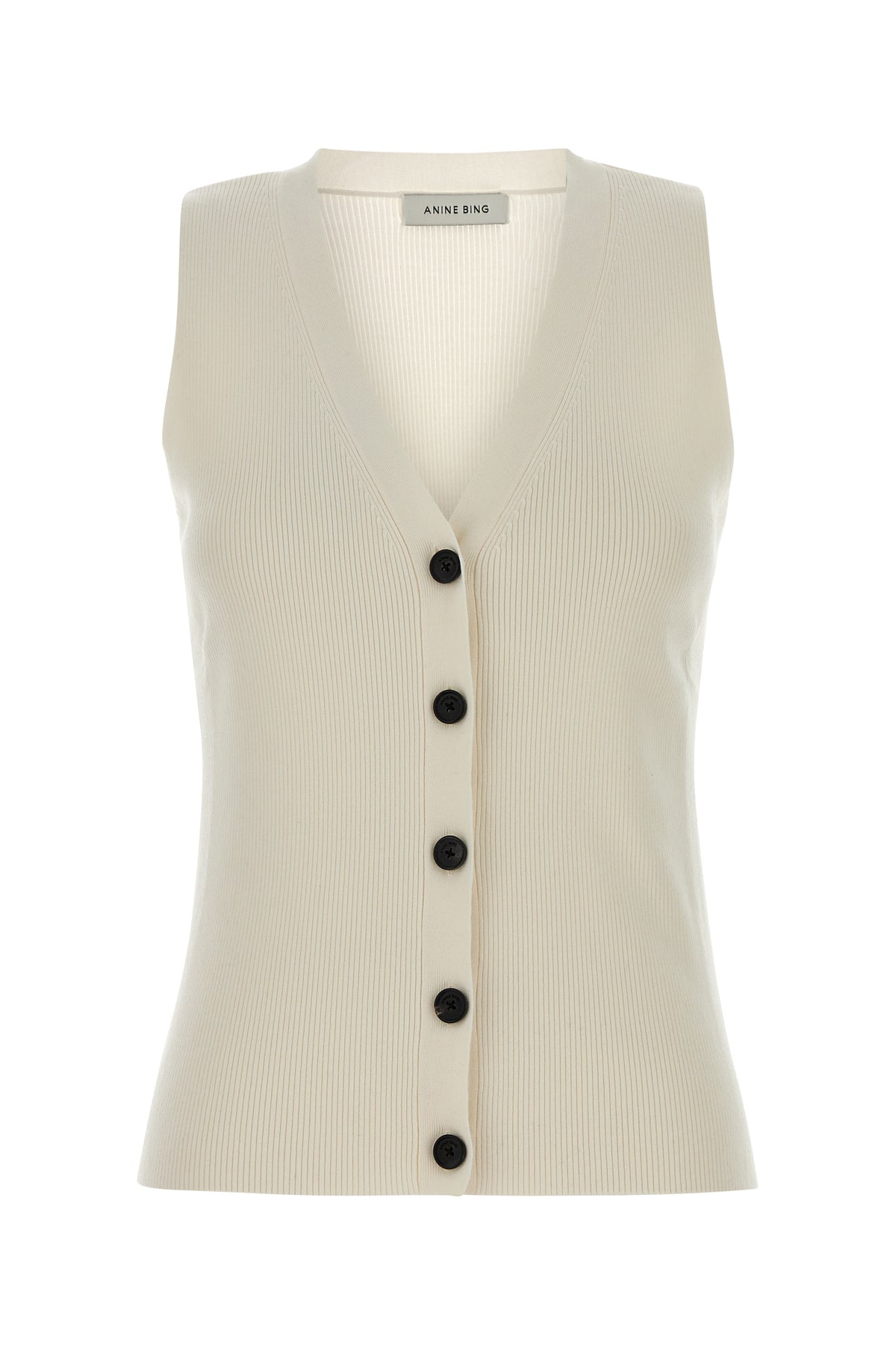 Vest realized in ribbed wool blend.