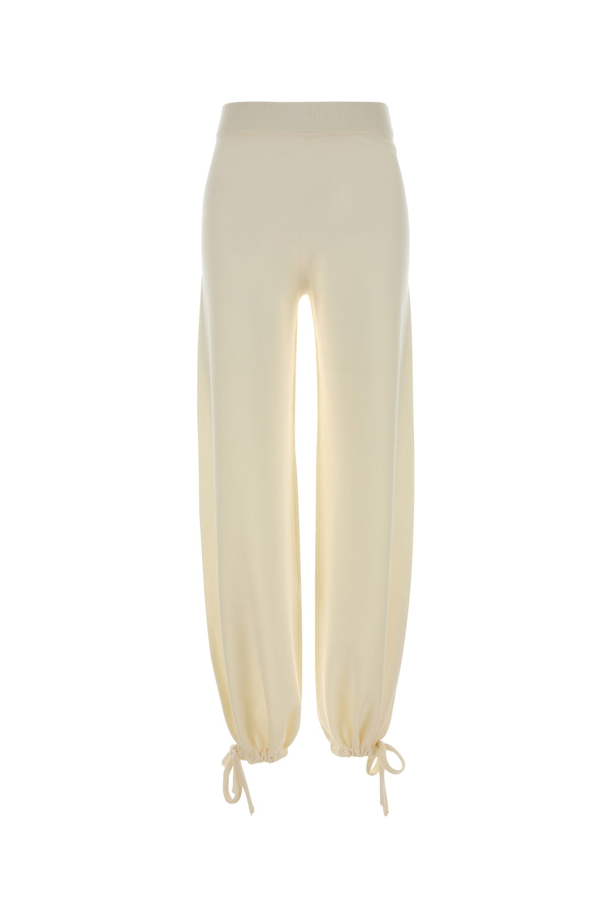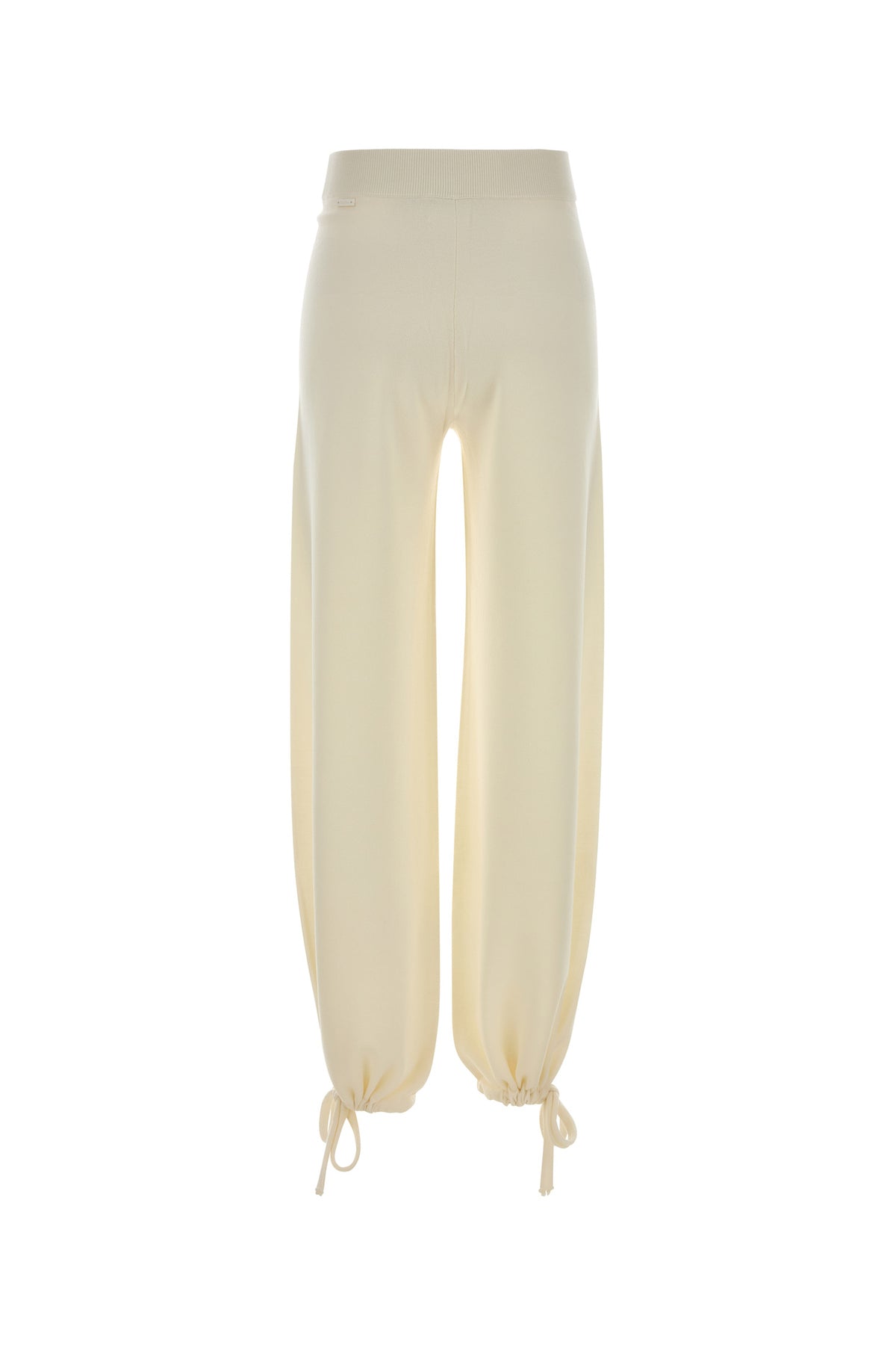 Wide-leg pant realized in pure virgin wool enriched by tonal metal logoed plate at the back.