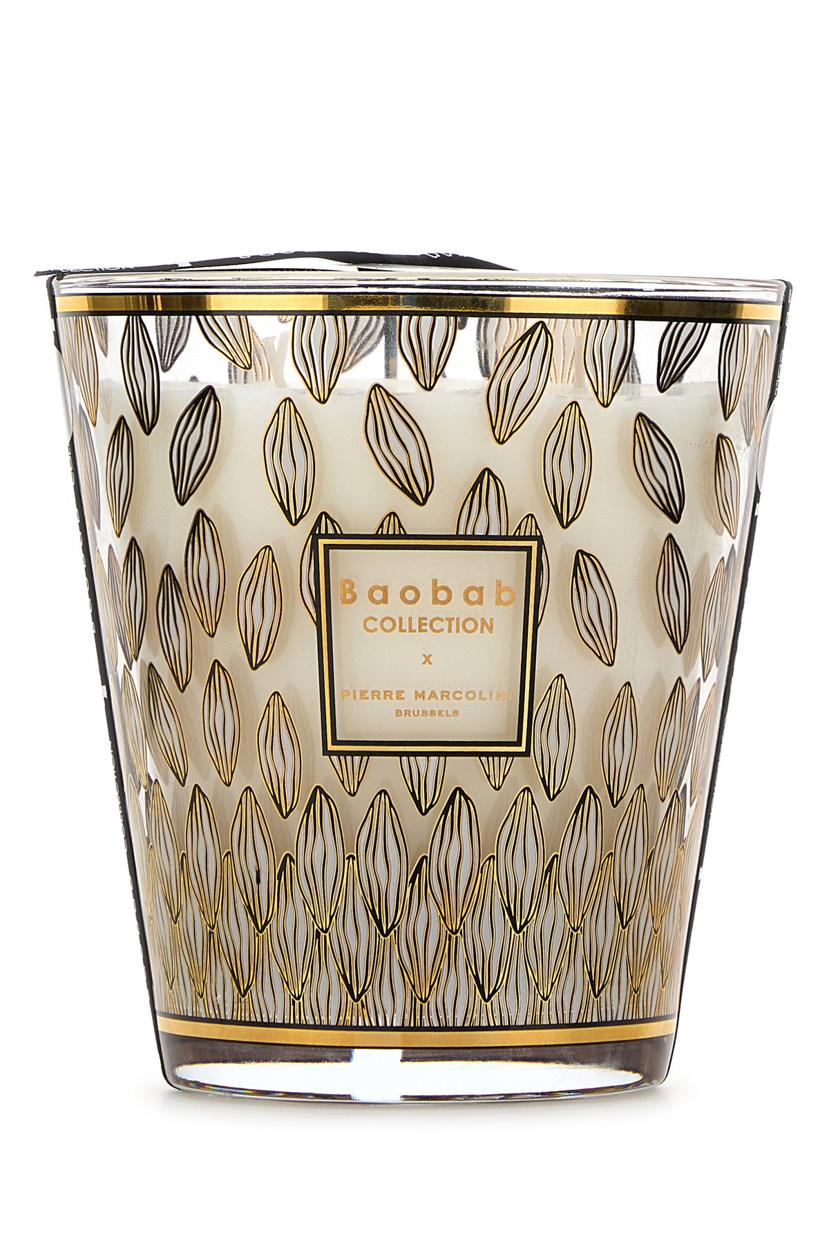 The screen-printed design of the Pérou scented candle pays homage to Criollo cocoa beans, the rarest and most sought-after variety, harvested exclusively in Peru and recognisable by their unique white colour, which gives Peruvian dark chocolate the appearance of milk chocolate. A shower of white and gold cocoa beans is scattered across the glass to create a decorative and extremely precious effect. The white in the design is reminiscent of the appearance of these particular cocoa beans. The fragrance is an ambassador for Peruvian flavours and at the same time the guardian of an ecosystem where jasmine blooms alongside cocoa plants.