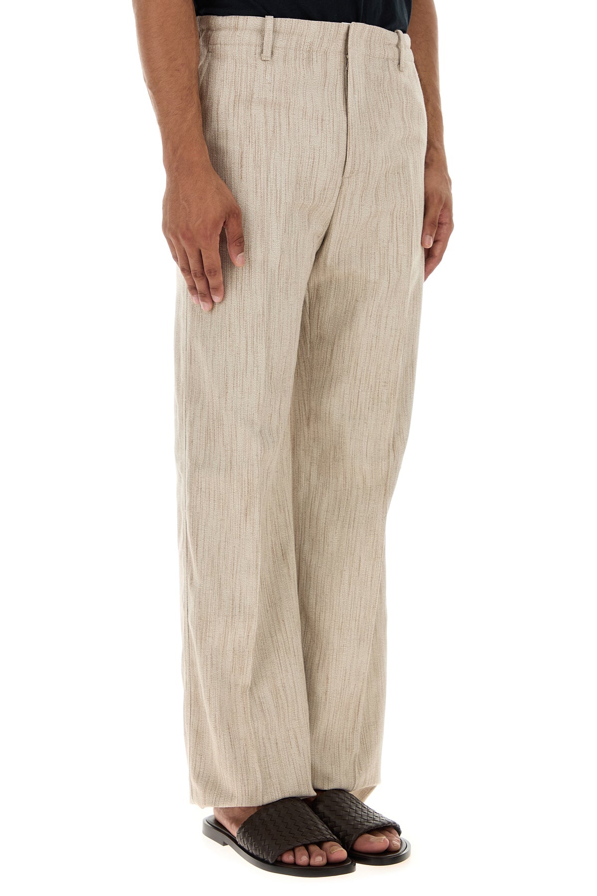 Pant realized in texturized viscose blend.