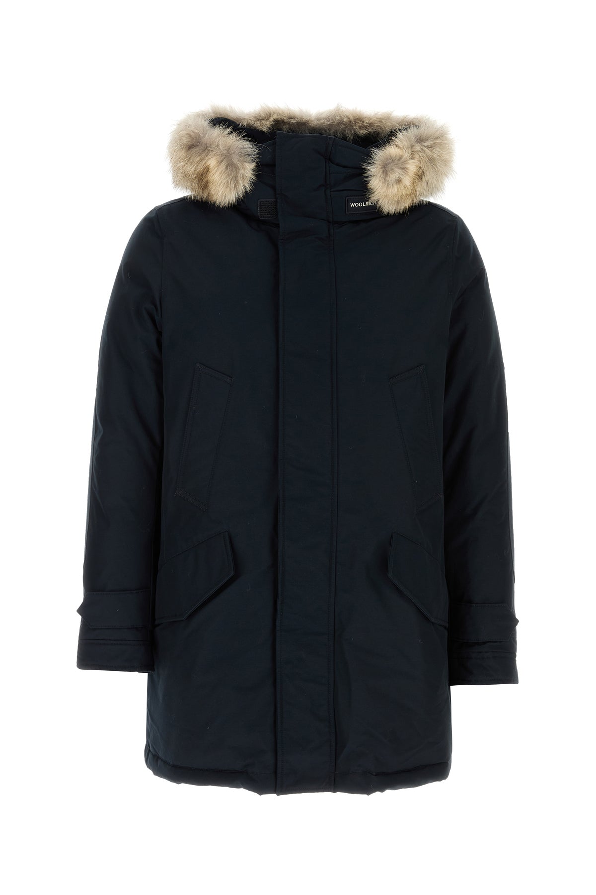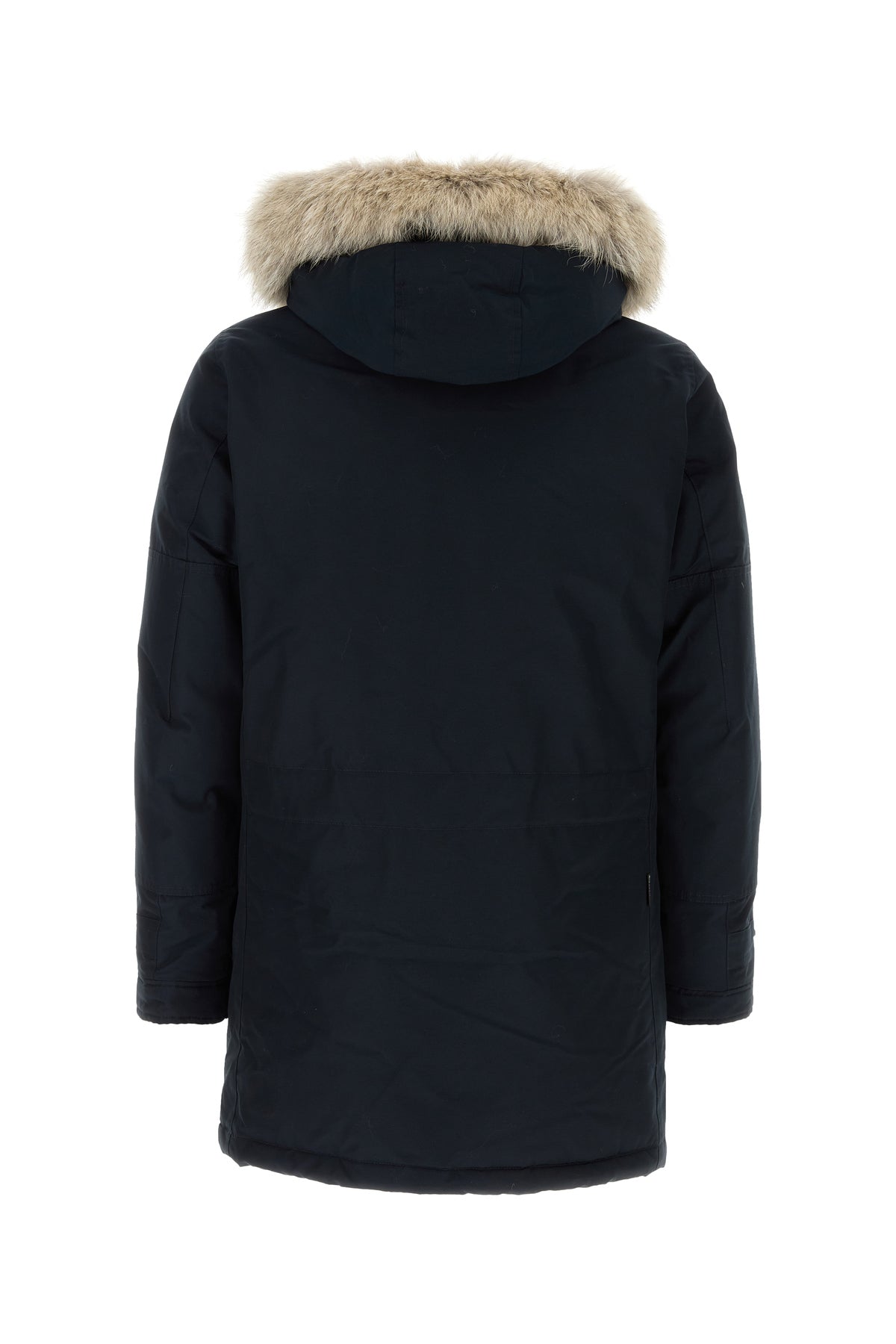 Down jacket realized in cotton blend enriched by logoed patch on the neck.