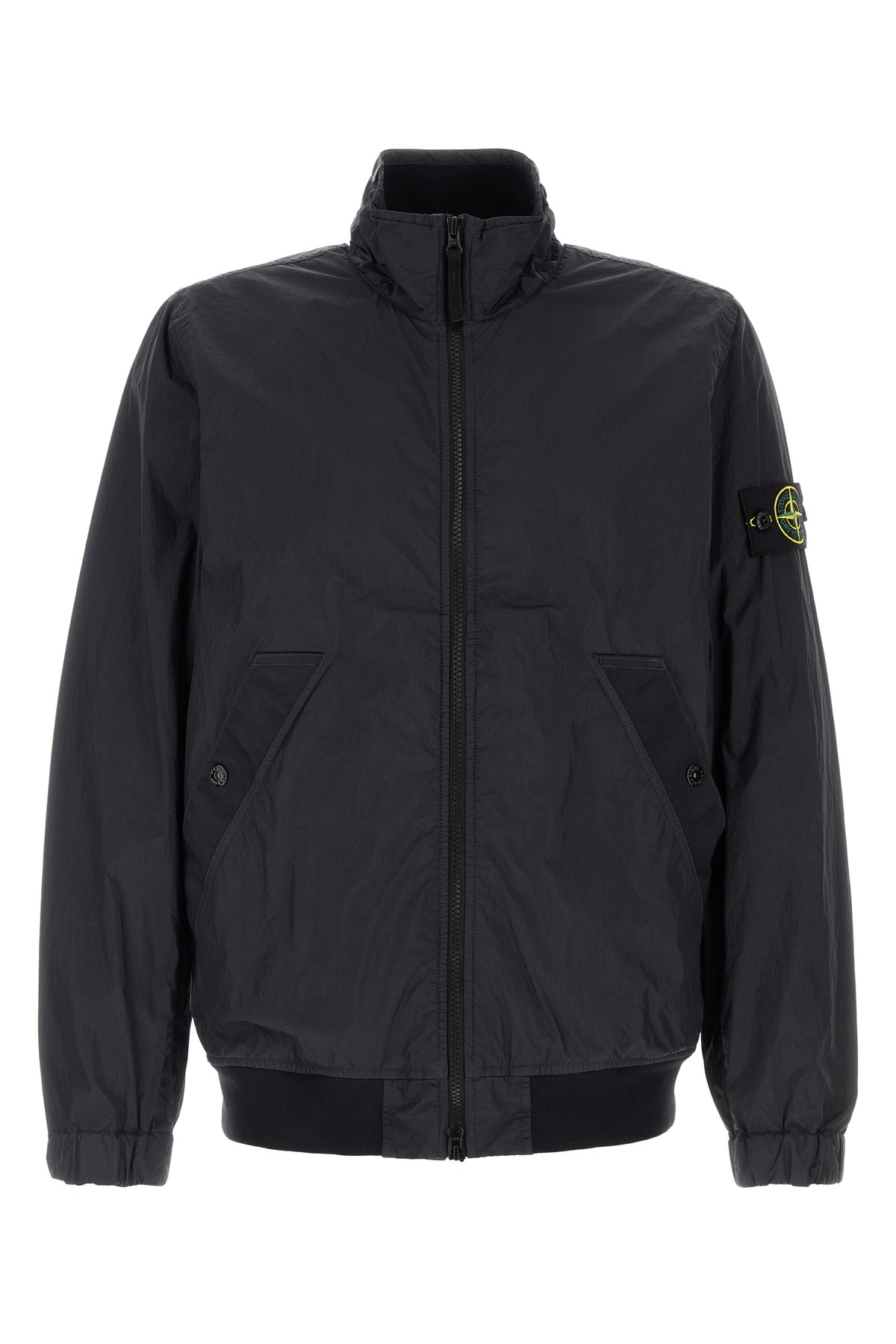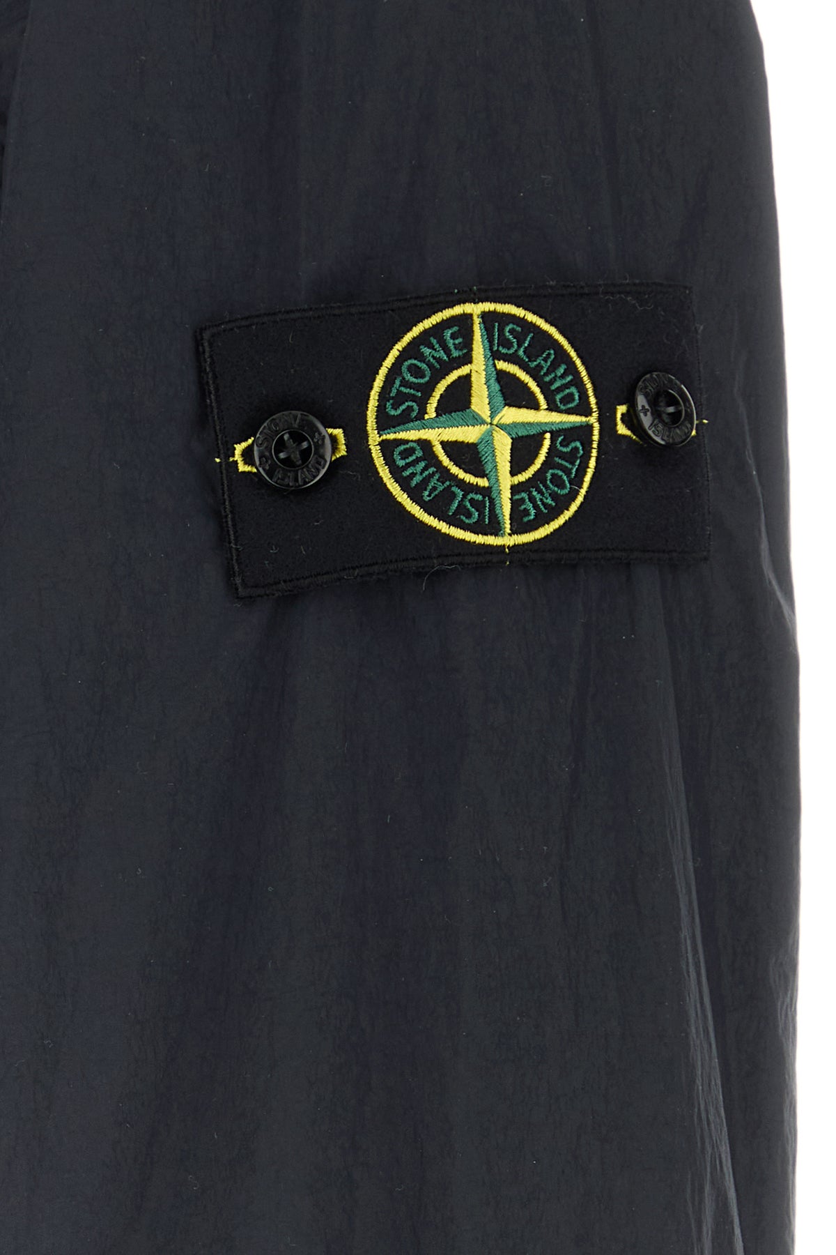 Jacket realized in coated nylon enriched by detachable logoed label on the sleeve.