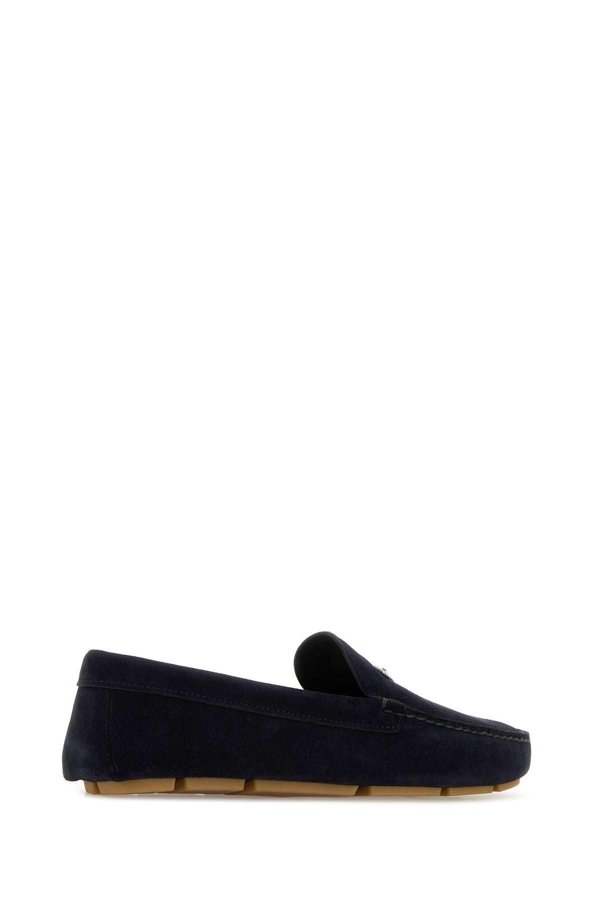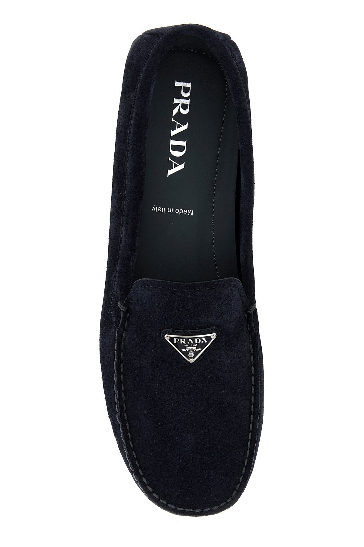 Loafers realized in calf suede enriched by iconic logoed metal triangle on the vamp.