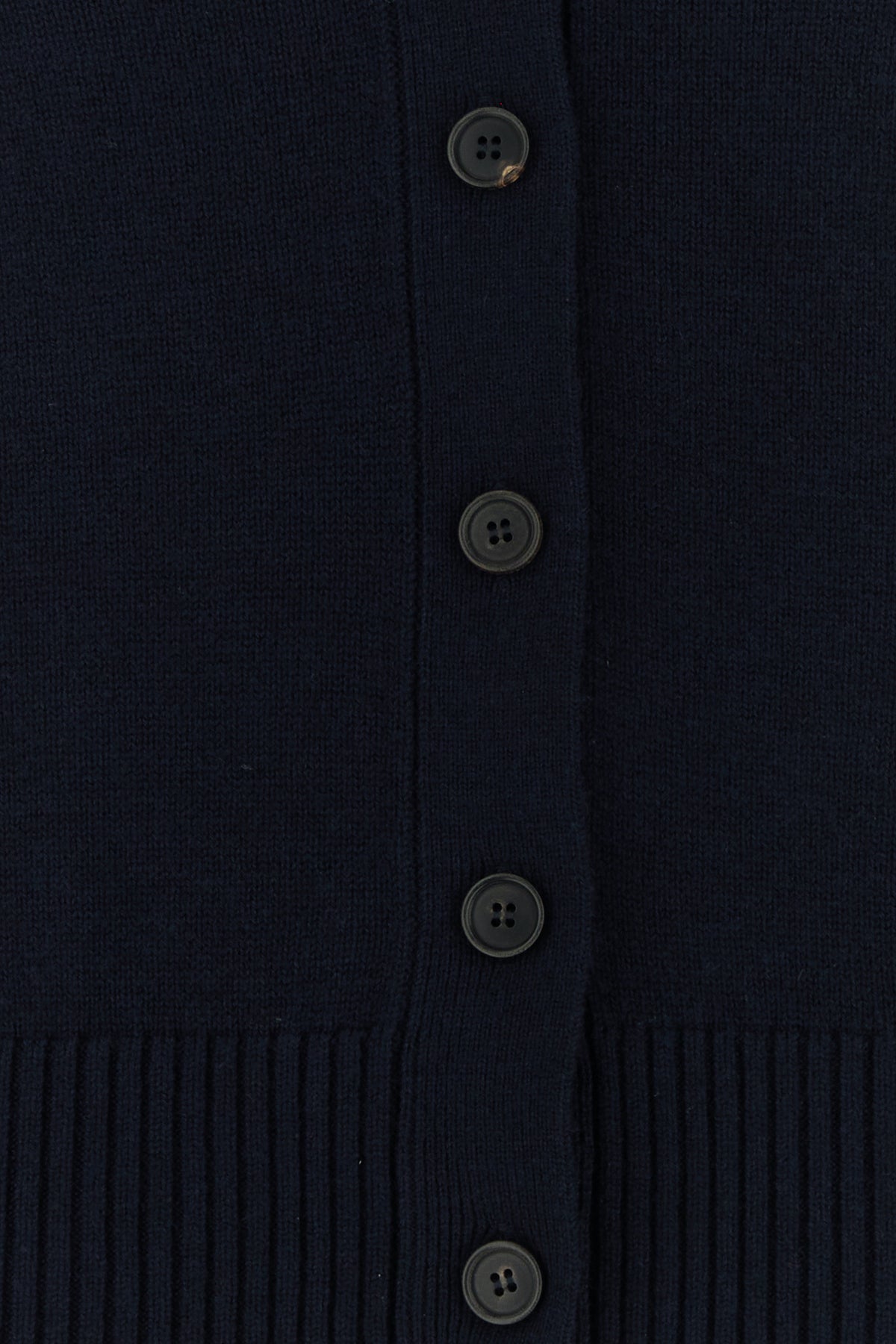 Cardigan realized in pure wool characterized by logo in relief on the sleeves.