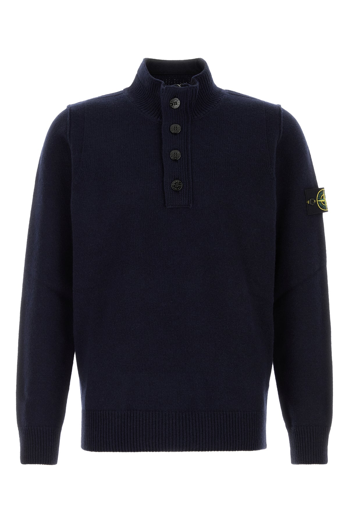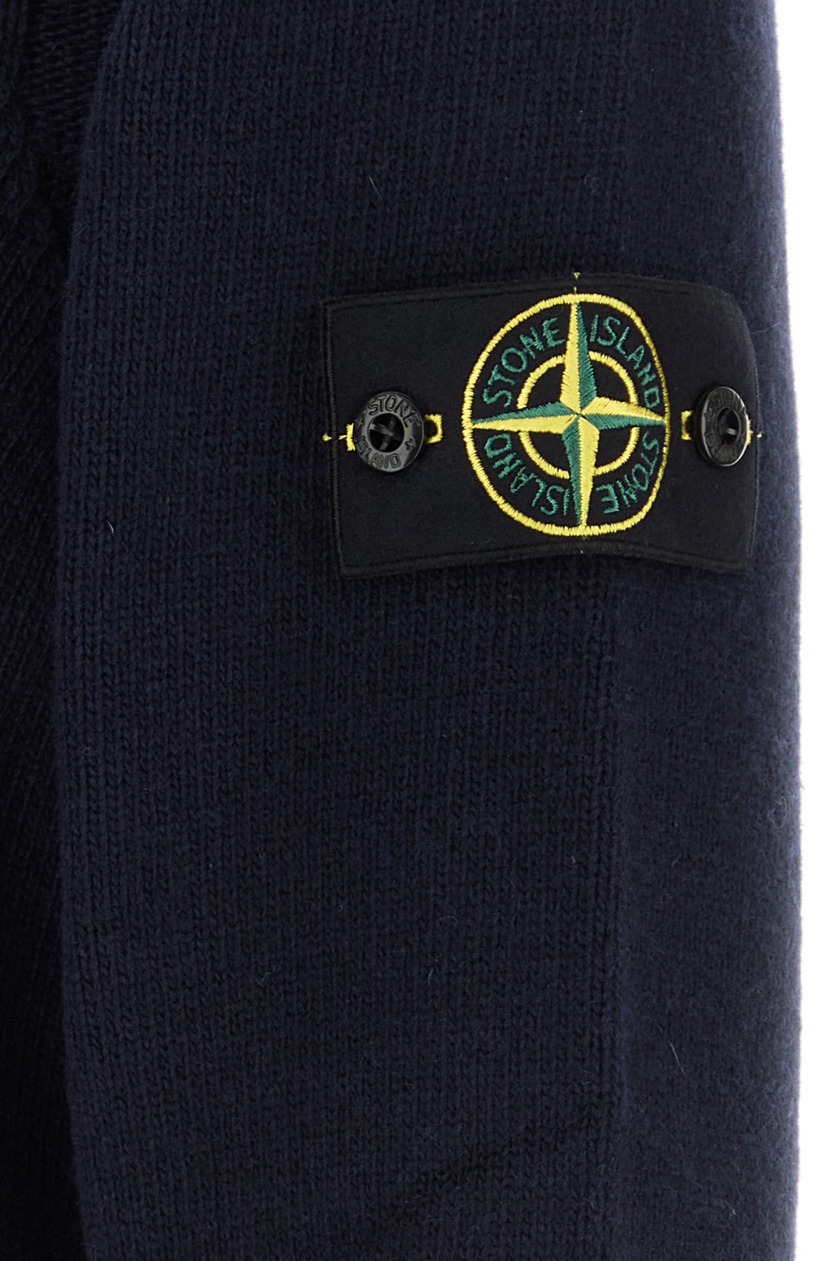 Sweater realized in virgin wool blend enriched by detachable logged label on the sleeve.