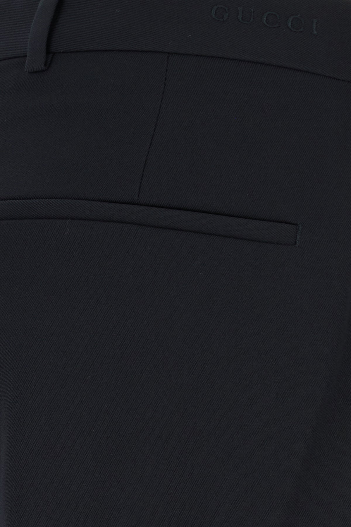 Pant realized in pure wool characterized by tonal Gucci embroidery at the back.