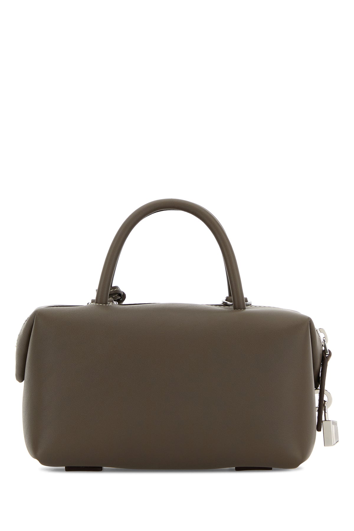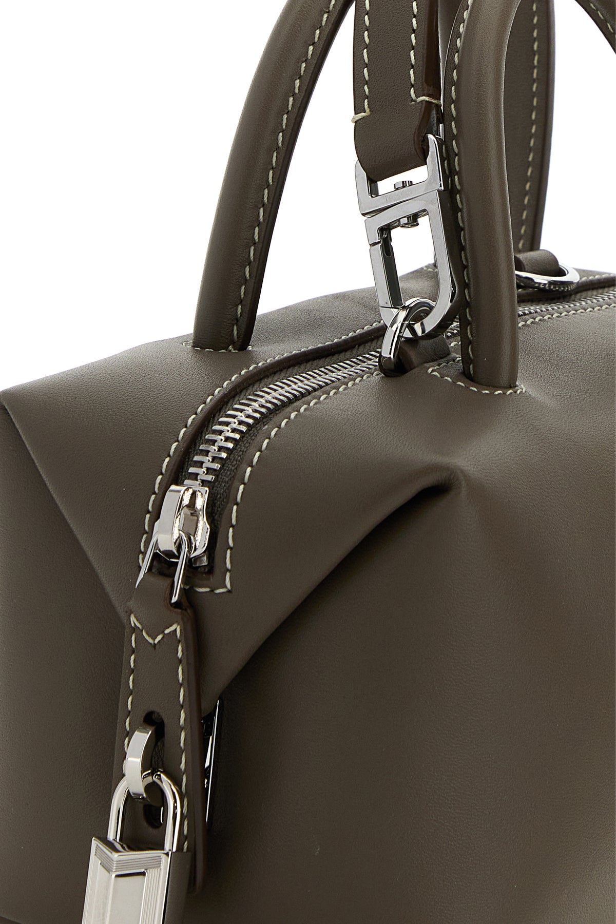 Handbag realized in smooth calf leather characterized by laminated printed logo at the front.