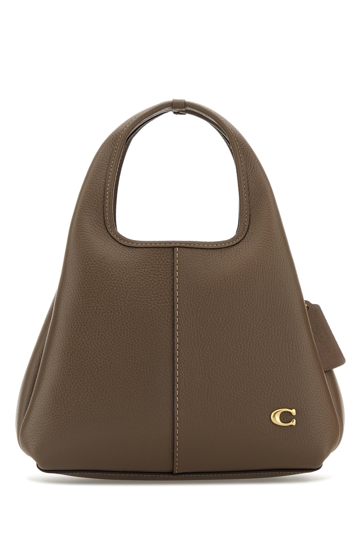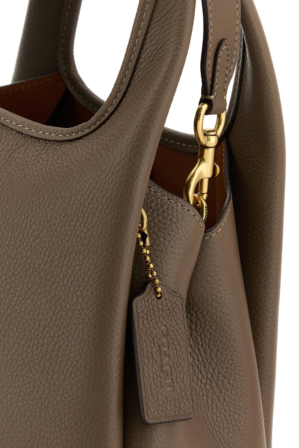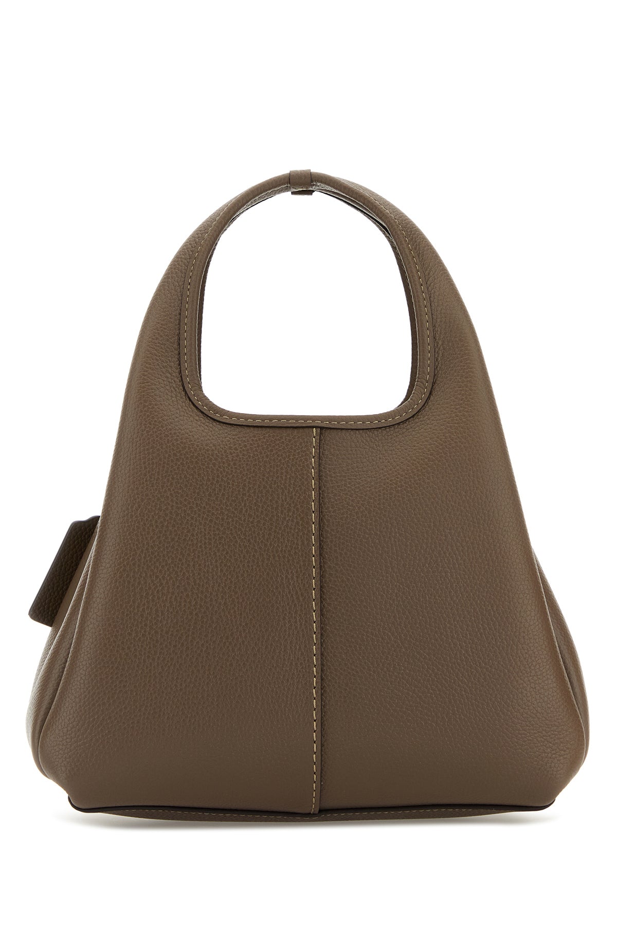 Handbag realized in pebble leather enriched by logoed metal detail at the front.