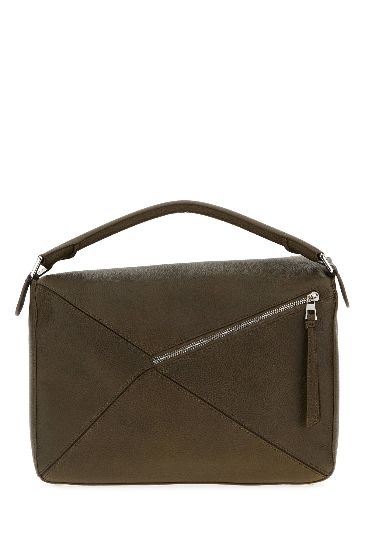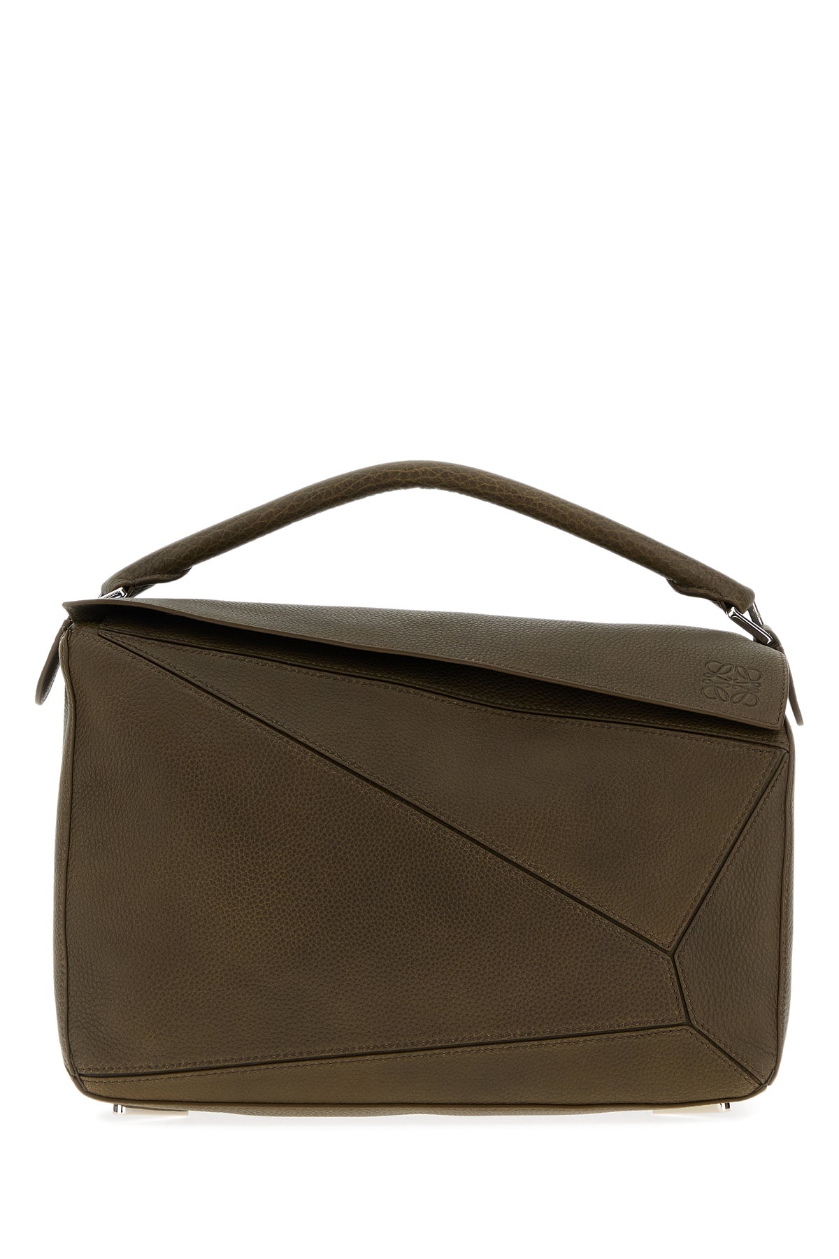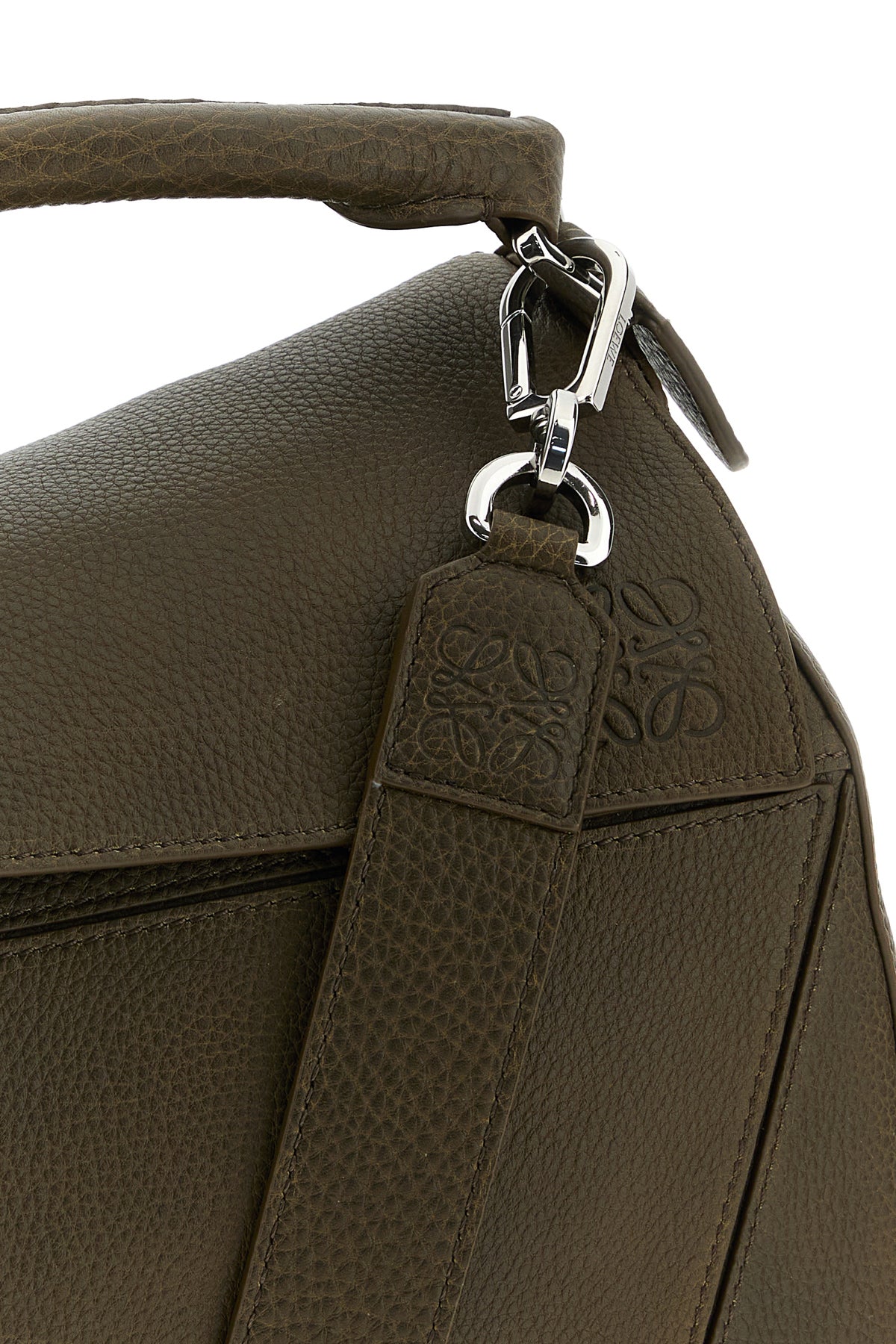 Handbag realized in pebble calf leather enriched by inlays and embossed Anagram motif on the flap and iconic geometric motif on the neater surface.
