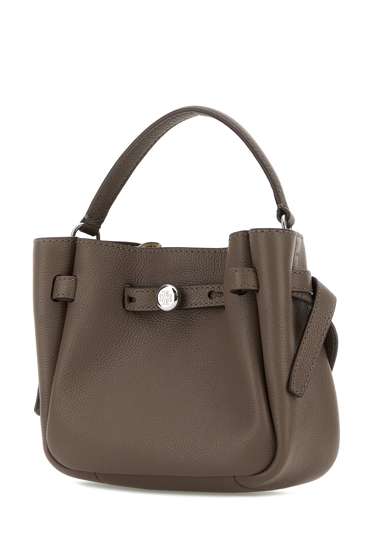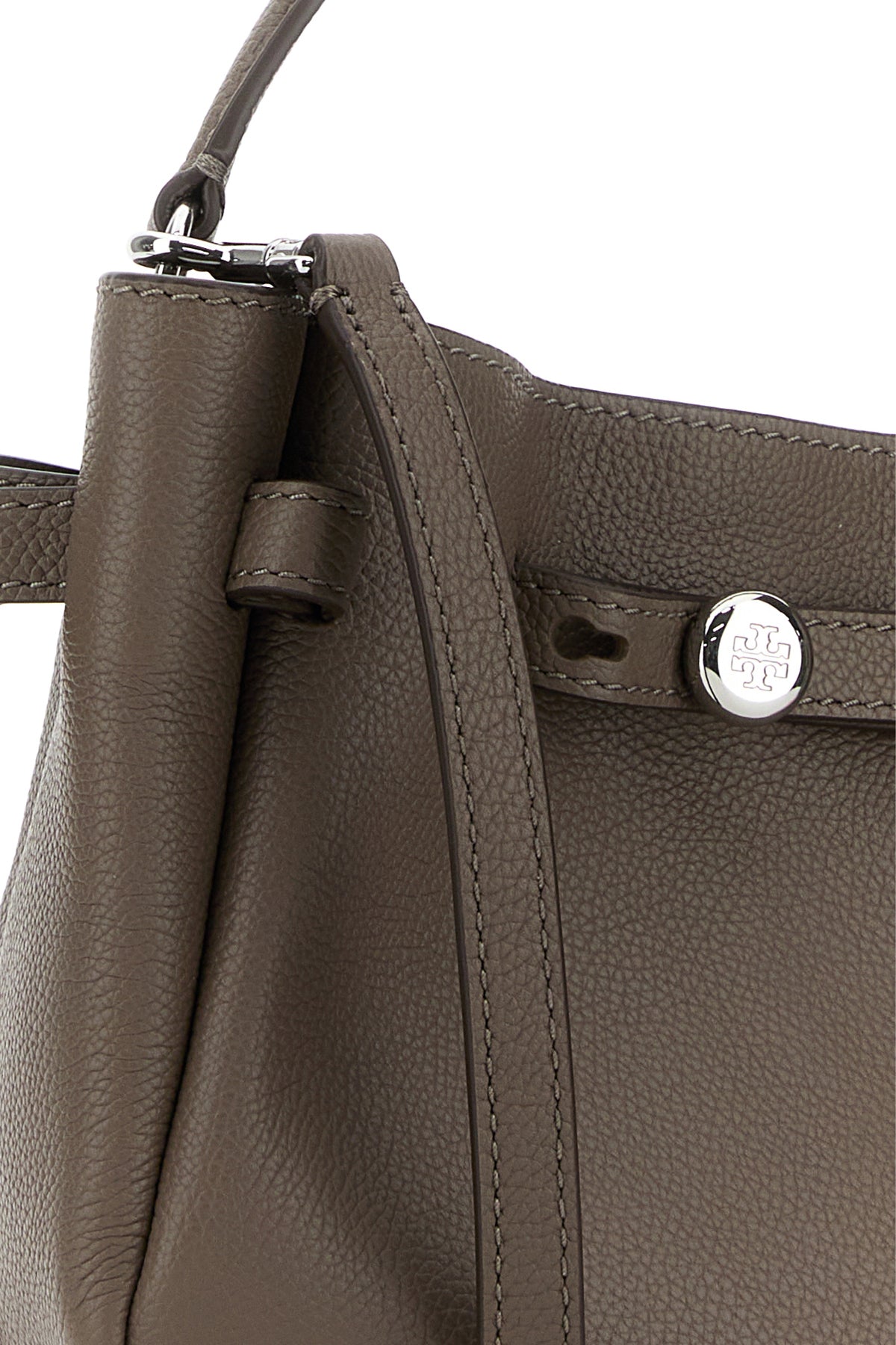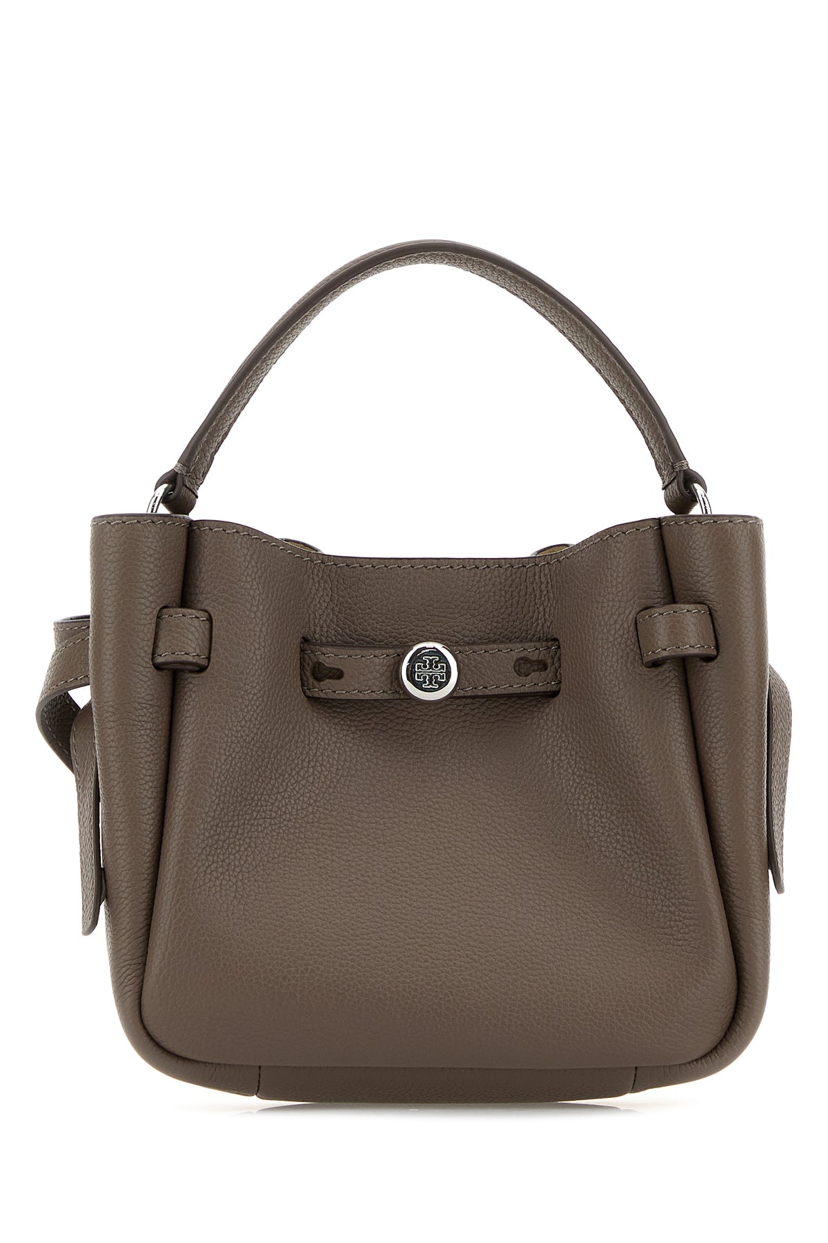 Bucket bag realized in pebble leather enriched by tonal leather belt with metal logoed detail.