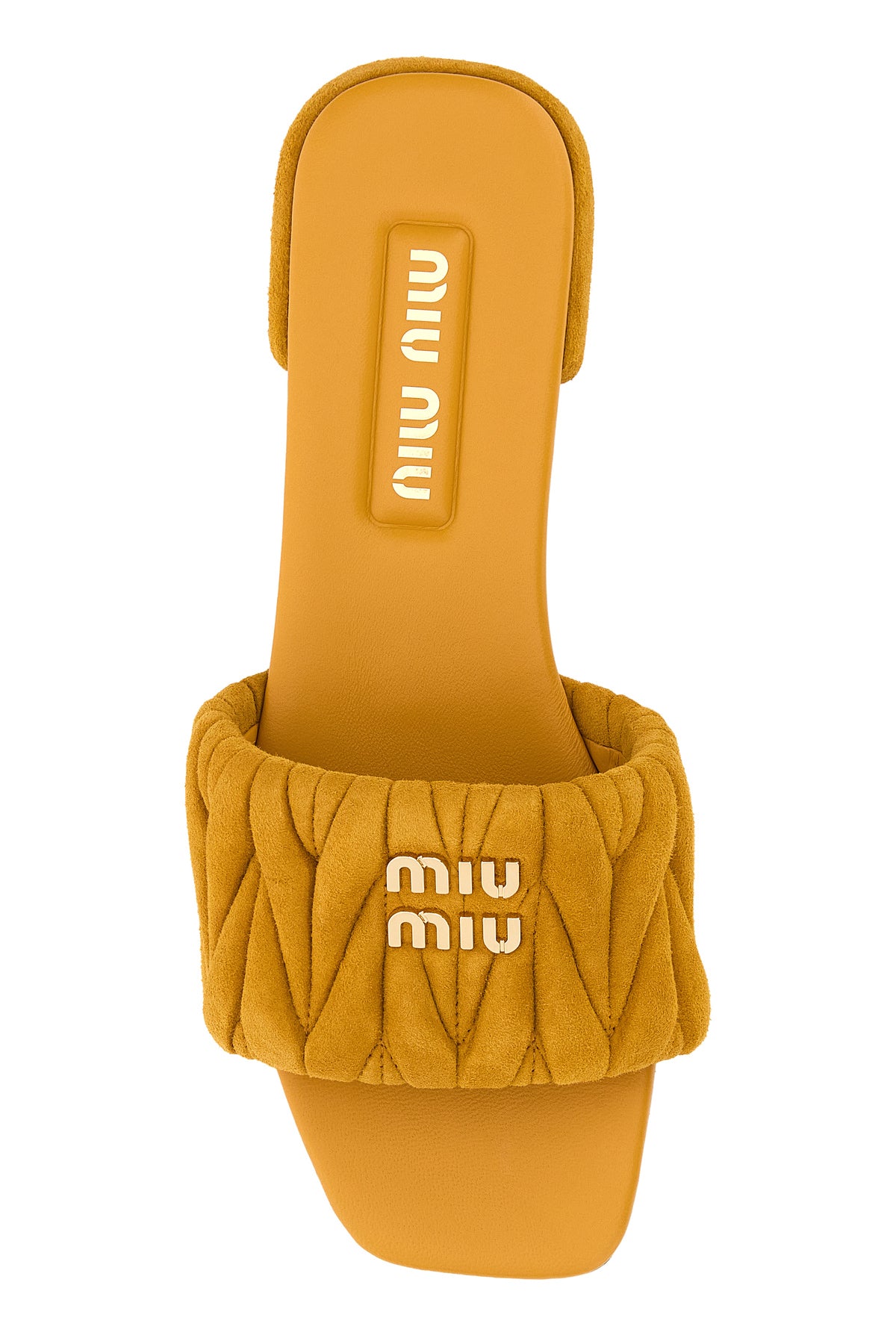 Slippers realized in matelasse suede enriched by metal lettering logo on the instep.