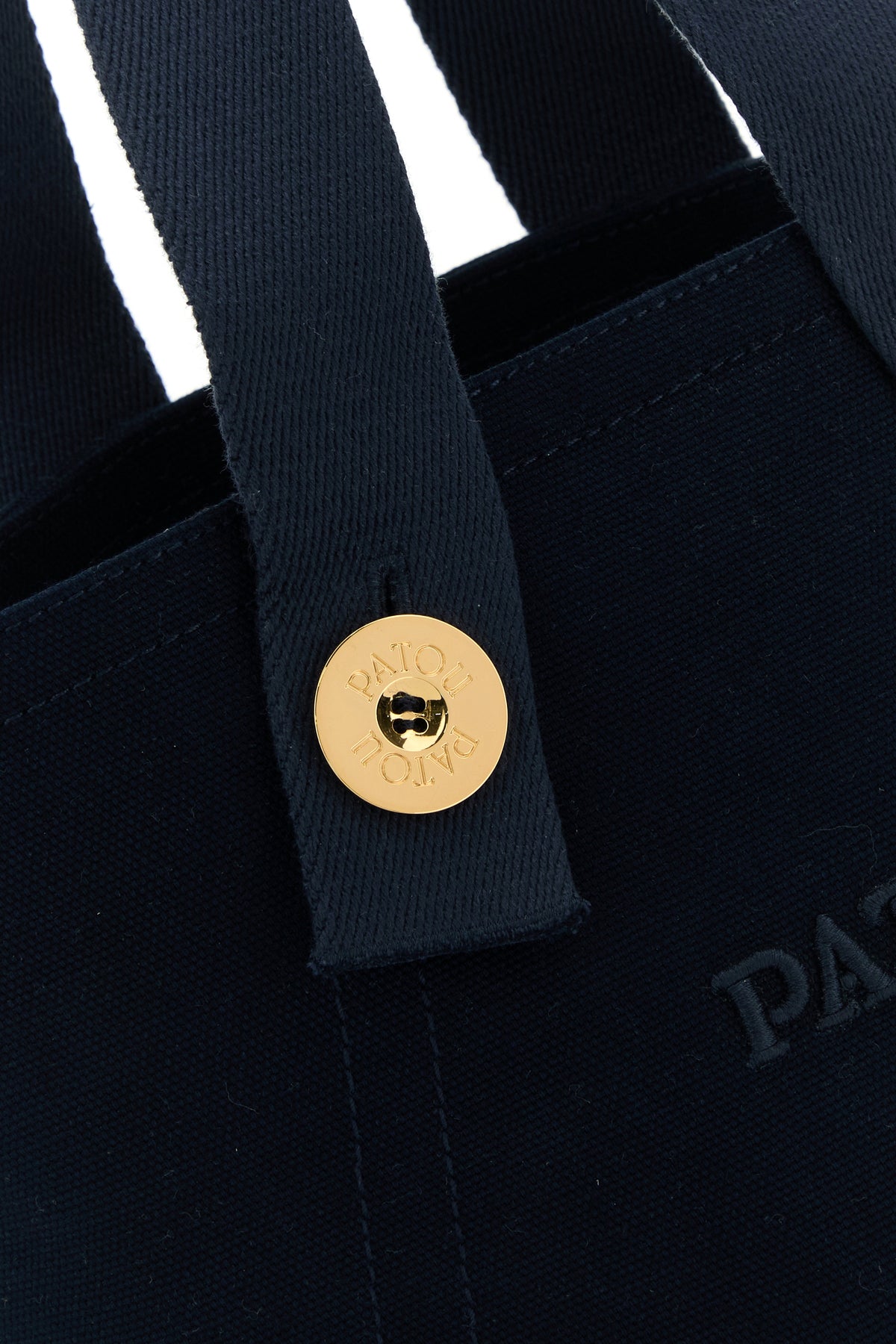 Handbag realized in canvas characterized by tonal embroidered logo at the front.