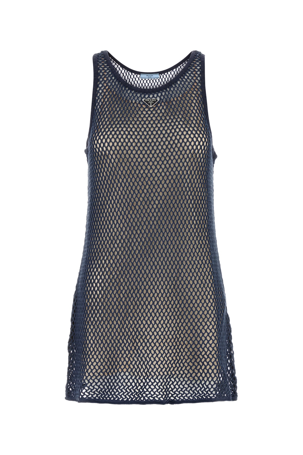 Mini dress realized in pure cotton mesh enriched by logoed metal triangle on the chest.