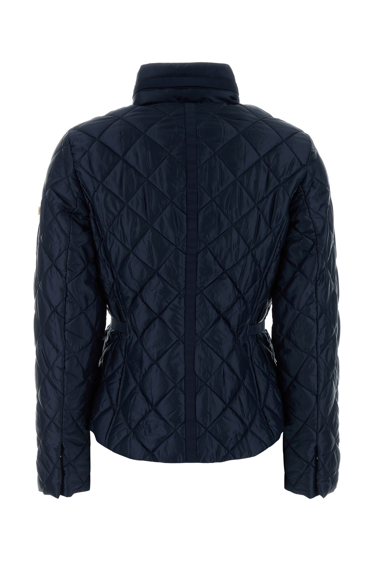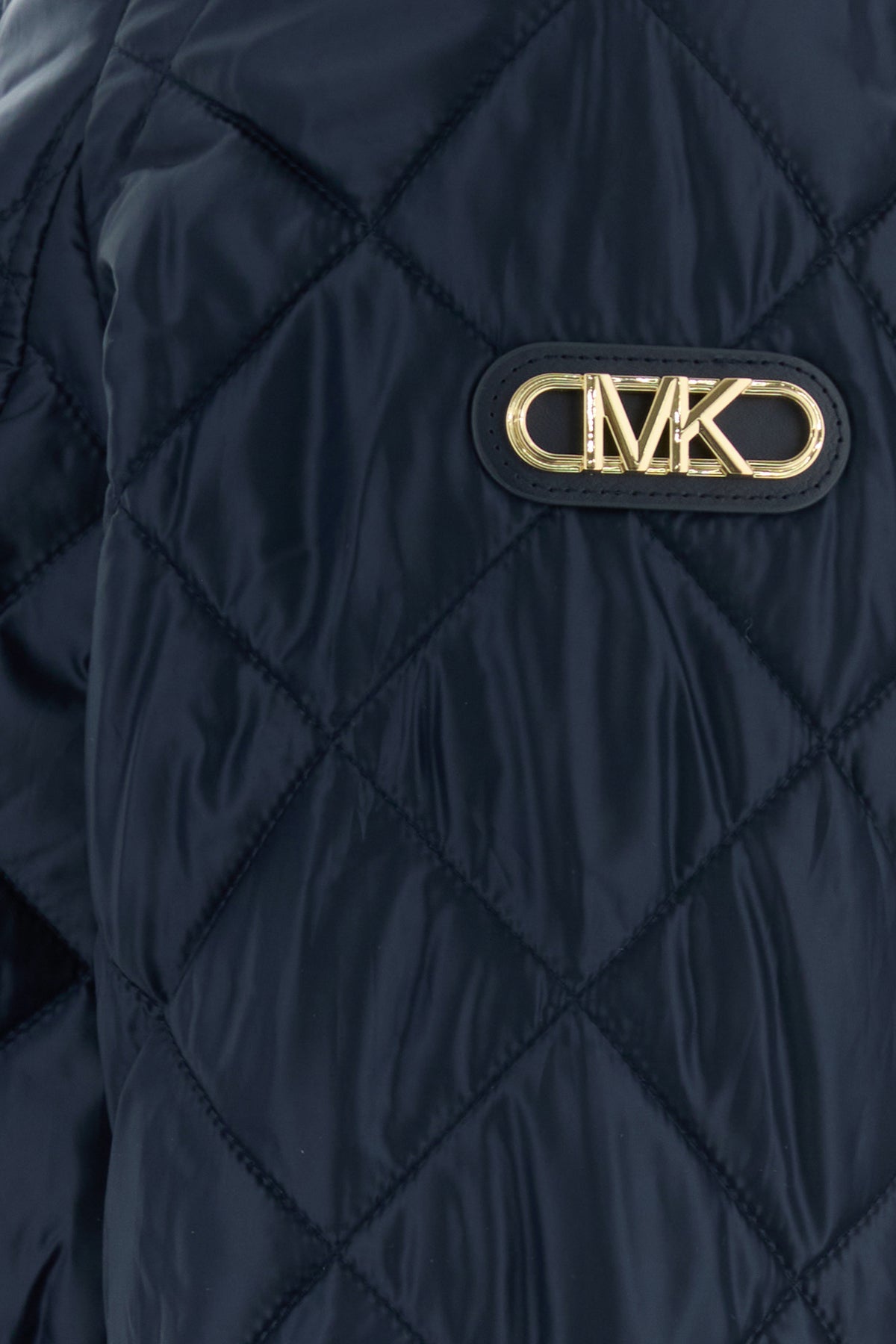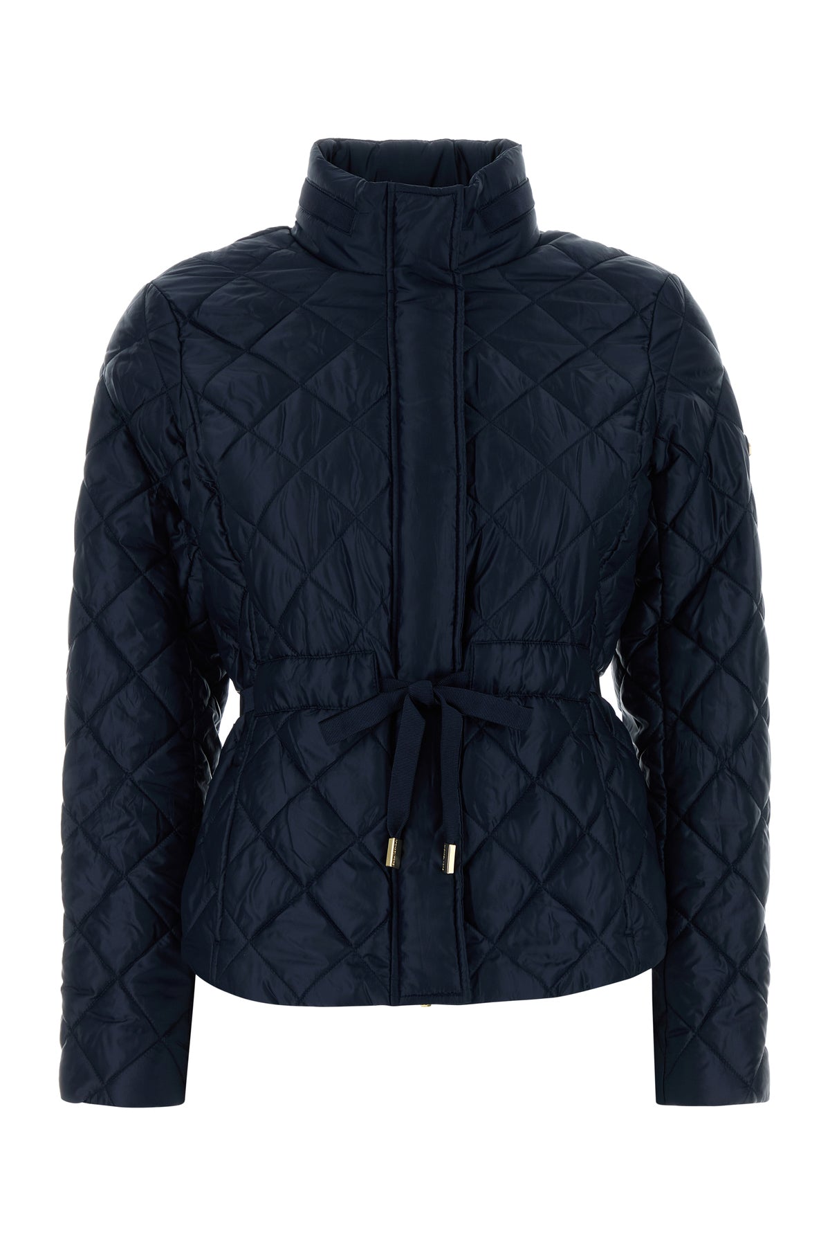 Padded jacket realized in quilted polyester characterized by drawstring at the waist.