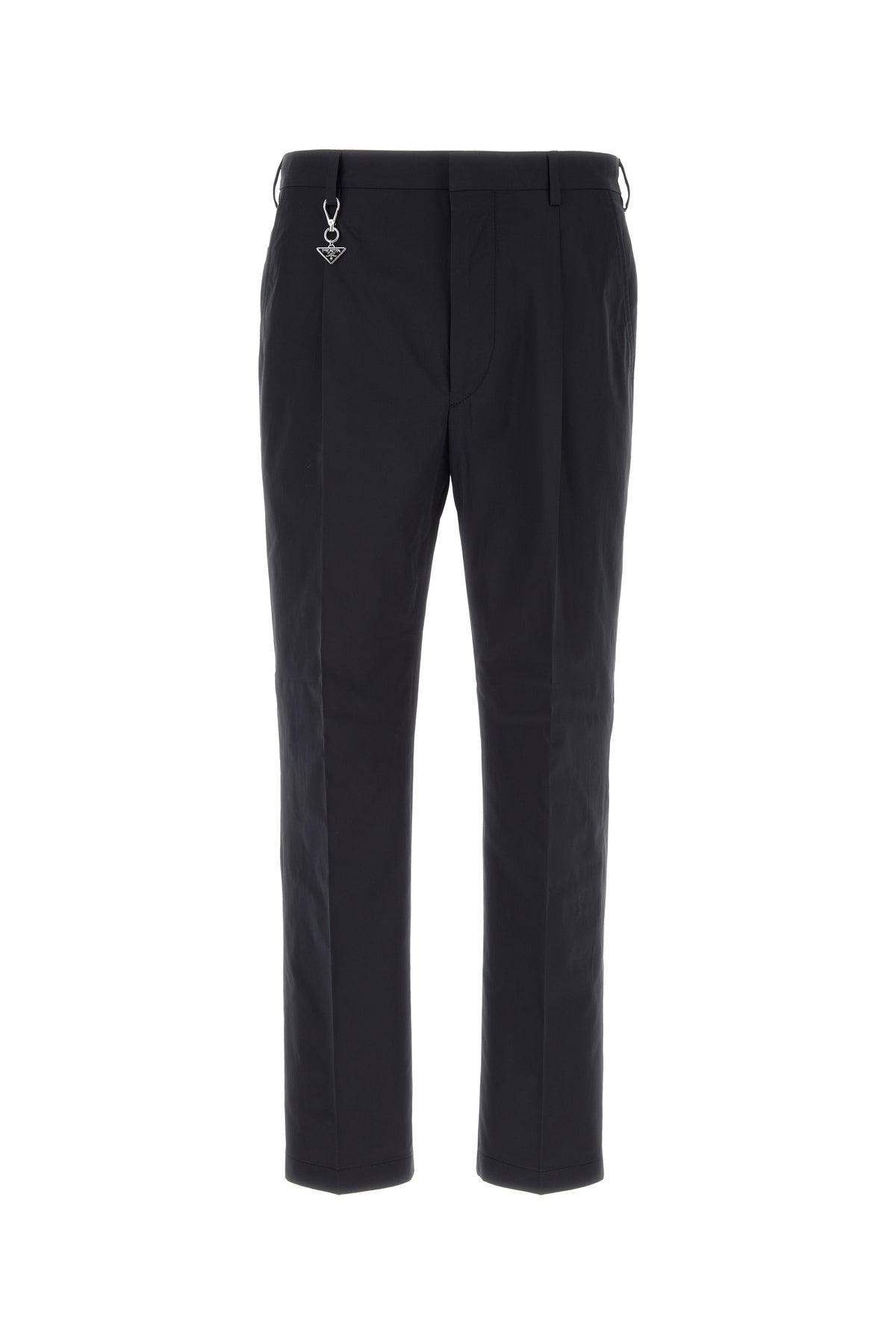 Pant realized in pure cotton poplin enriched by detachable metal iconic triangle at the front.