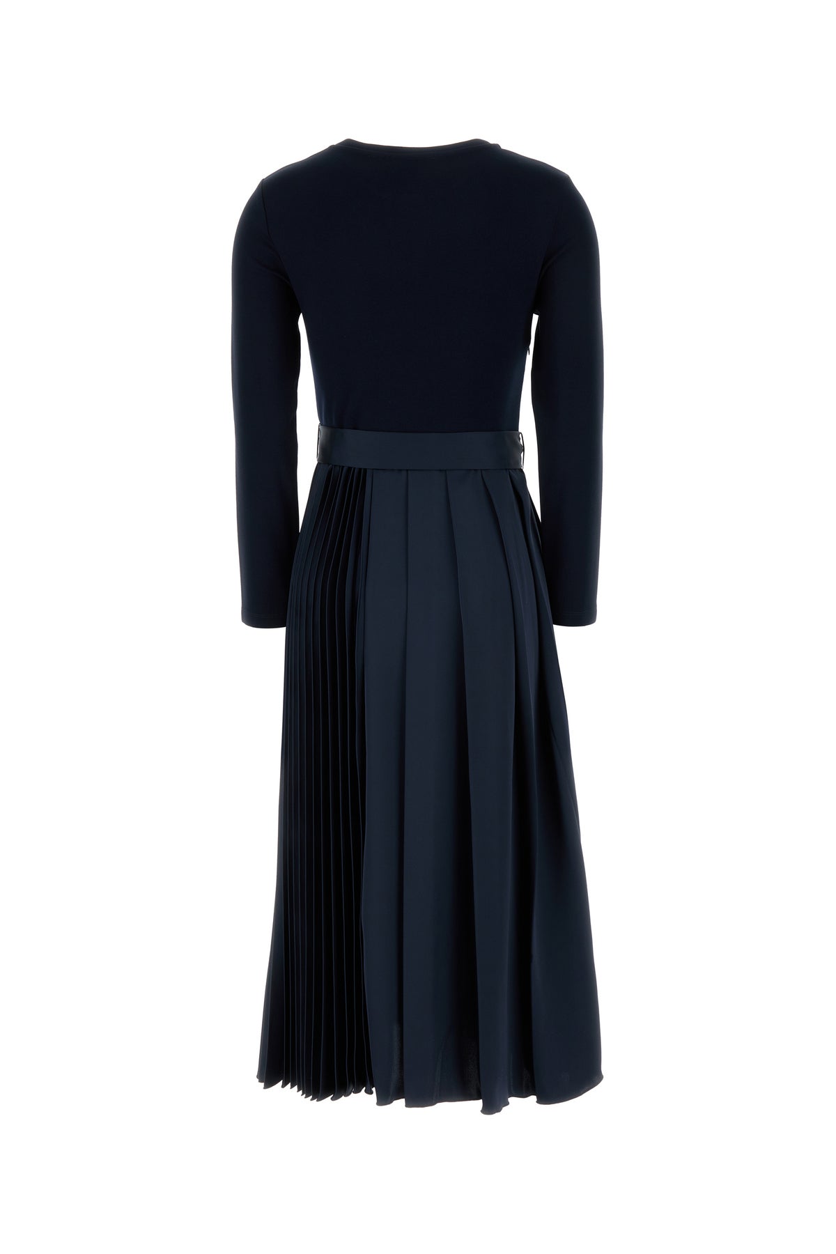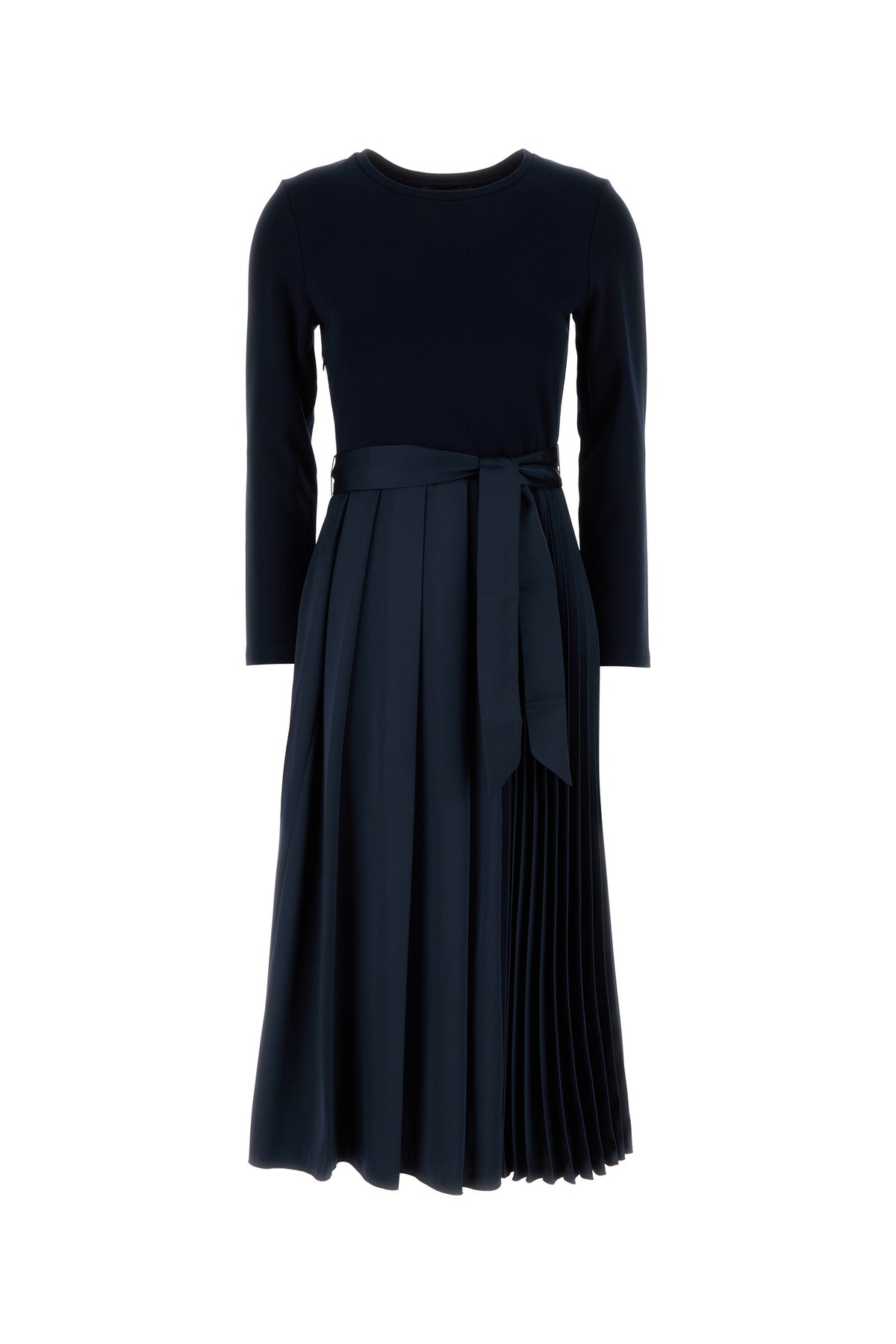 Dress realized in stretch viscose blend with satin insert on the hemline.