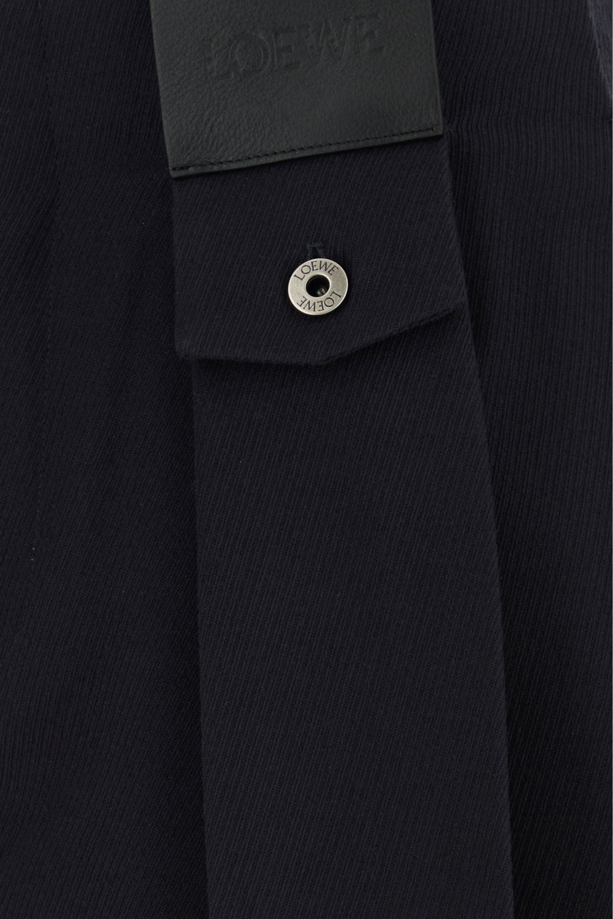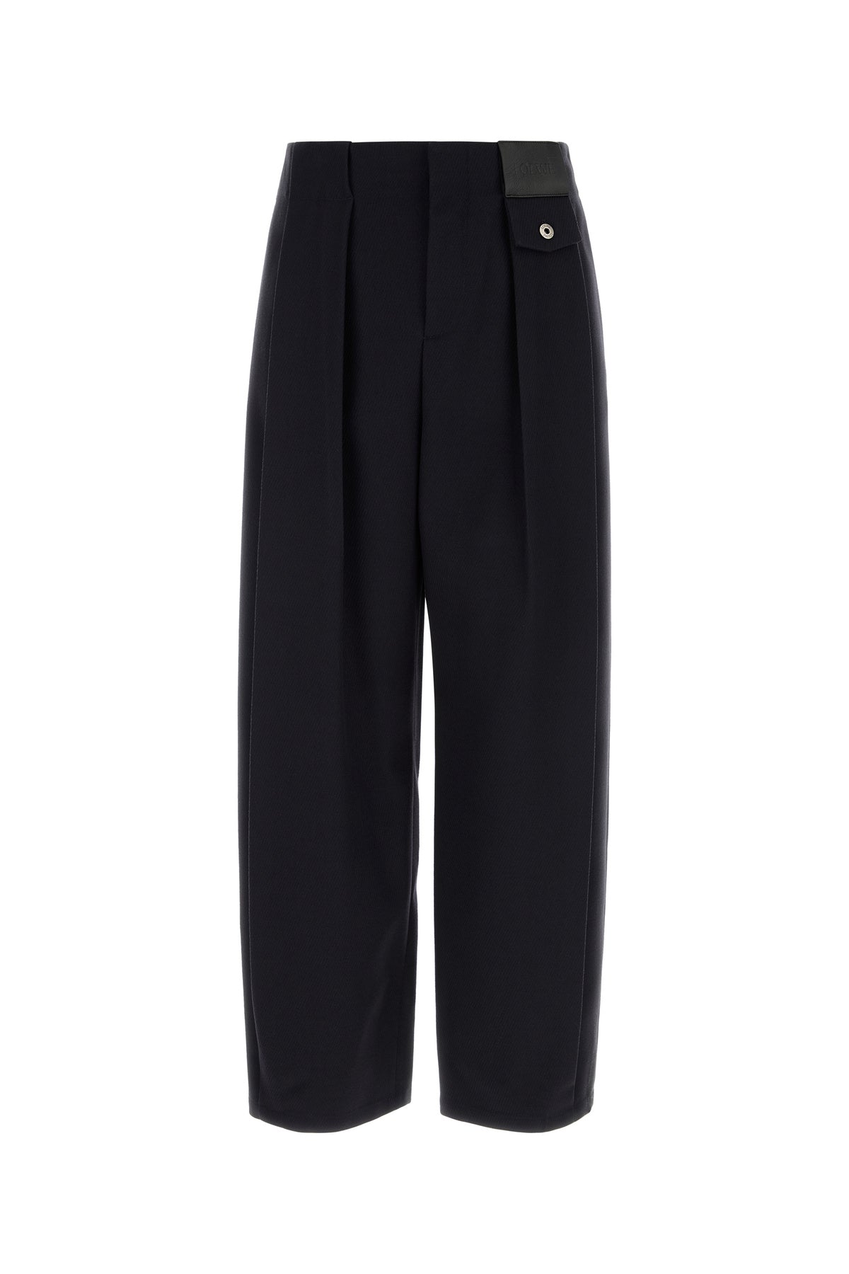 Wide-leg pant realized in pure wool enriched by leather LOEWE label at the front.