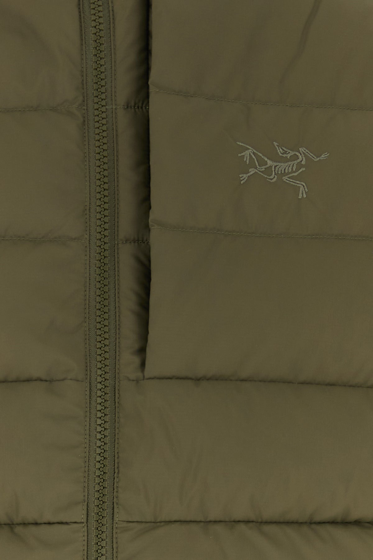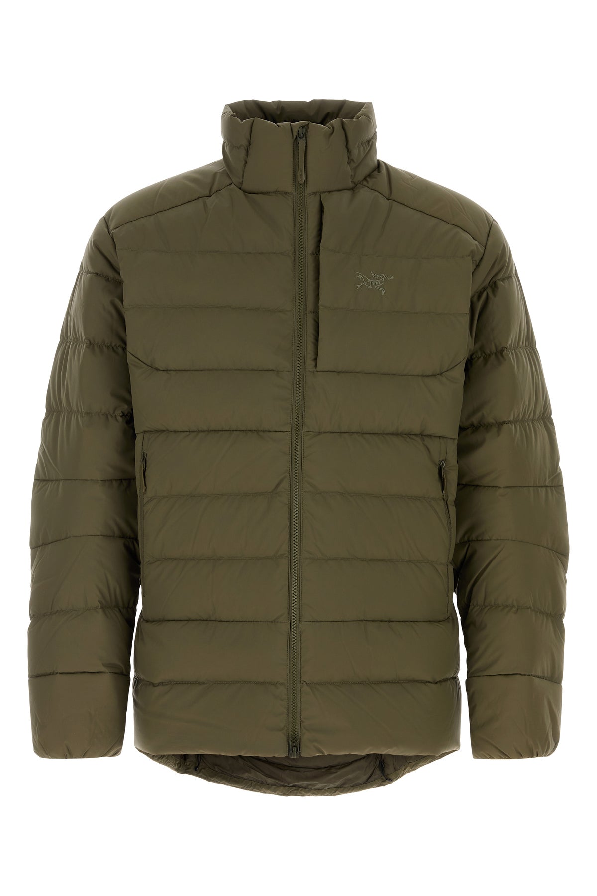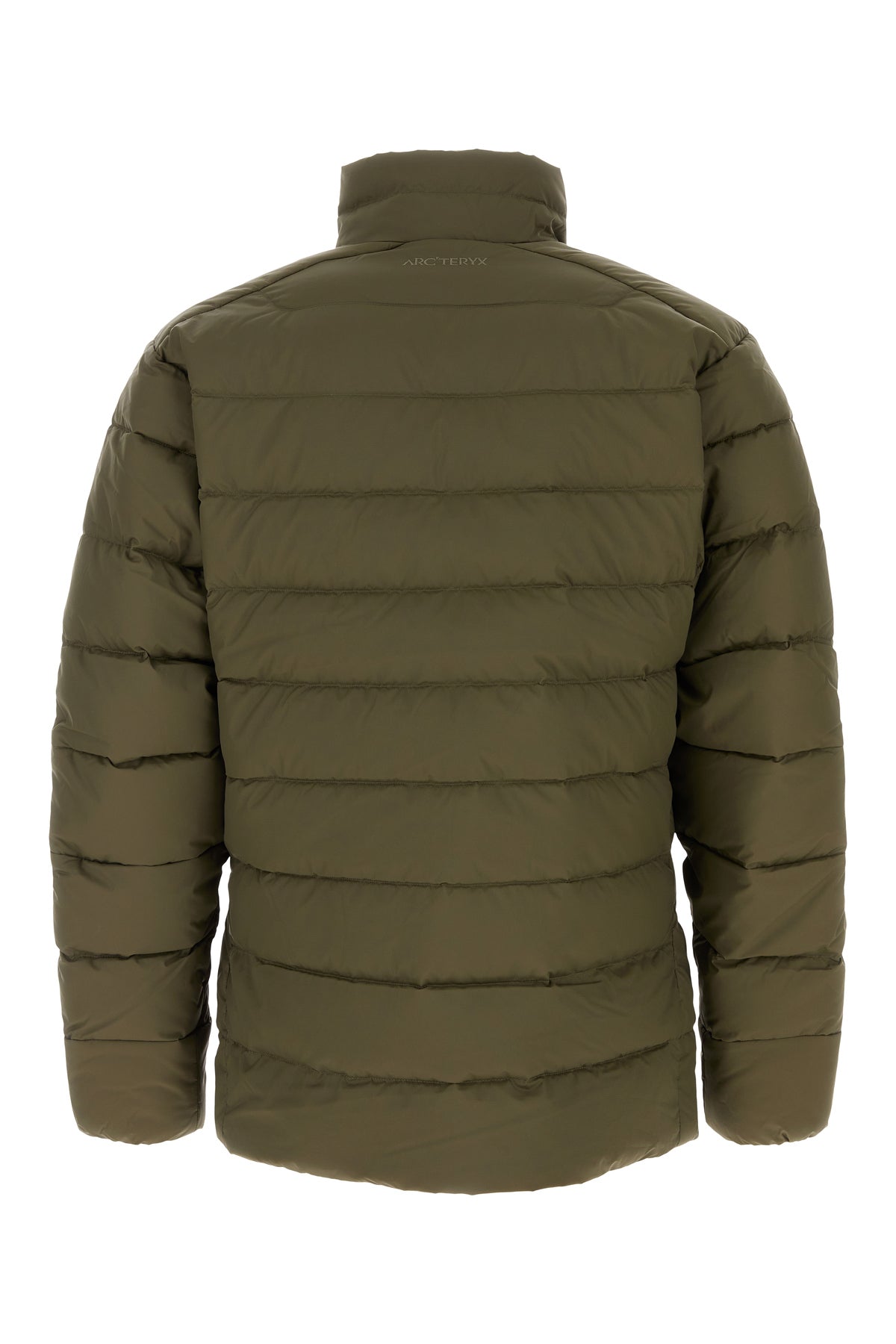 Down jacket realized in quilted nylon characterized by contrasting embroidered logo on the chest and at the back.