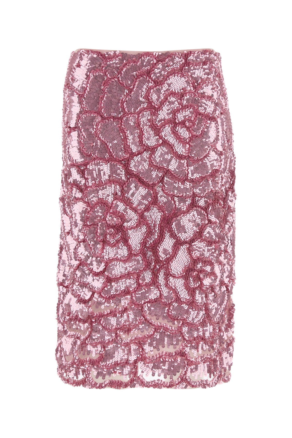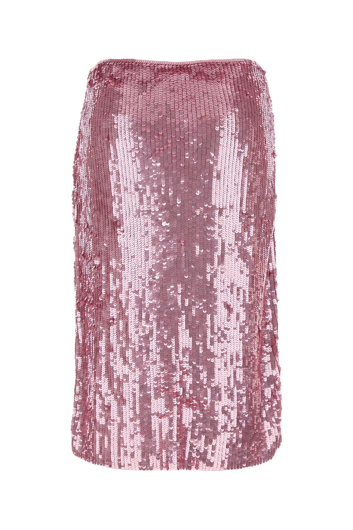 Midi-length skirt realized in mesh entirely covered by sequins.