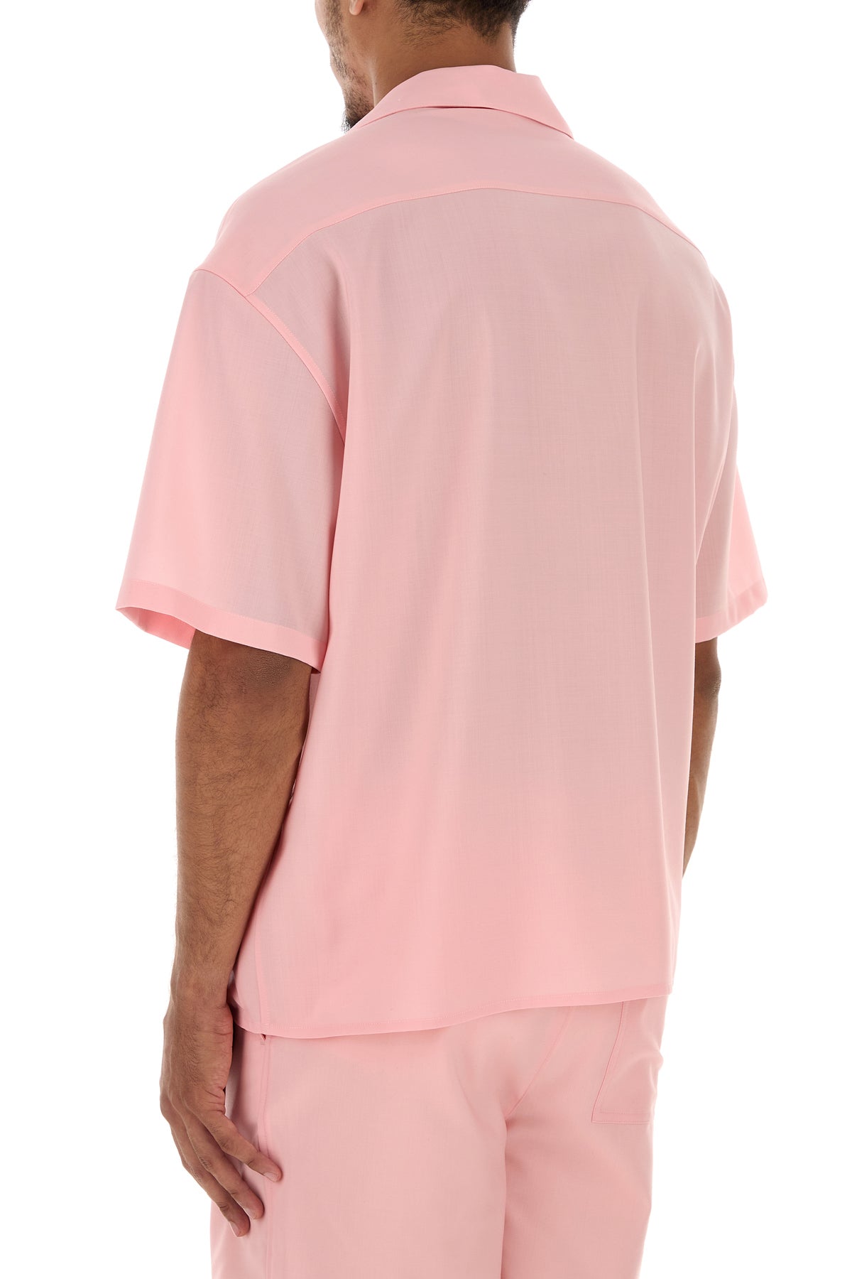Short-sleeves shirt realized in pure wool characterized by tonal Anagram embroidery at the front.