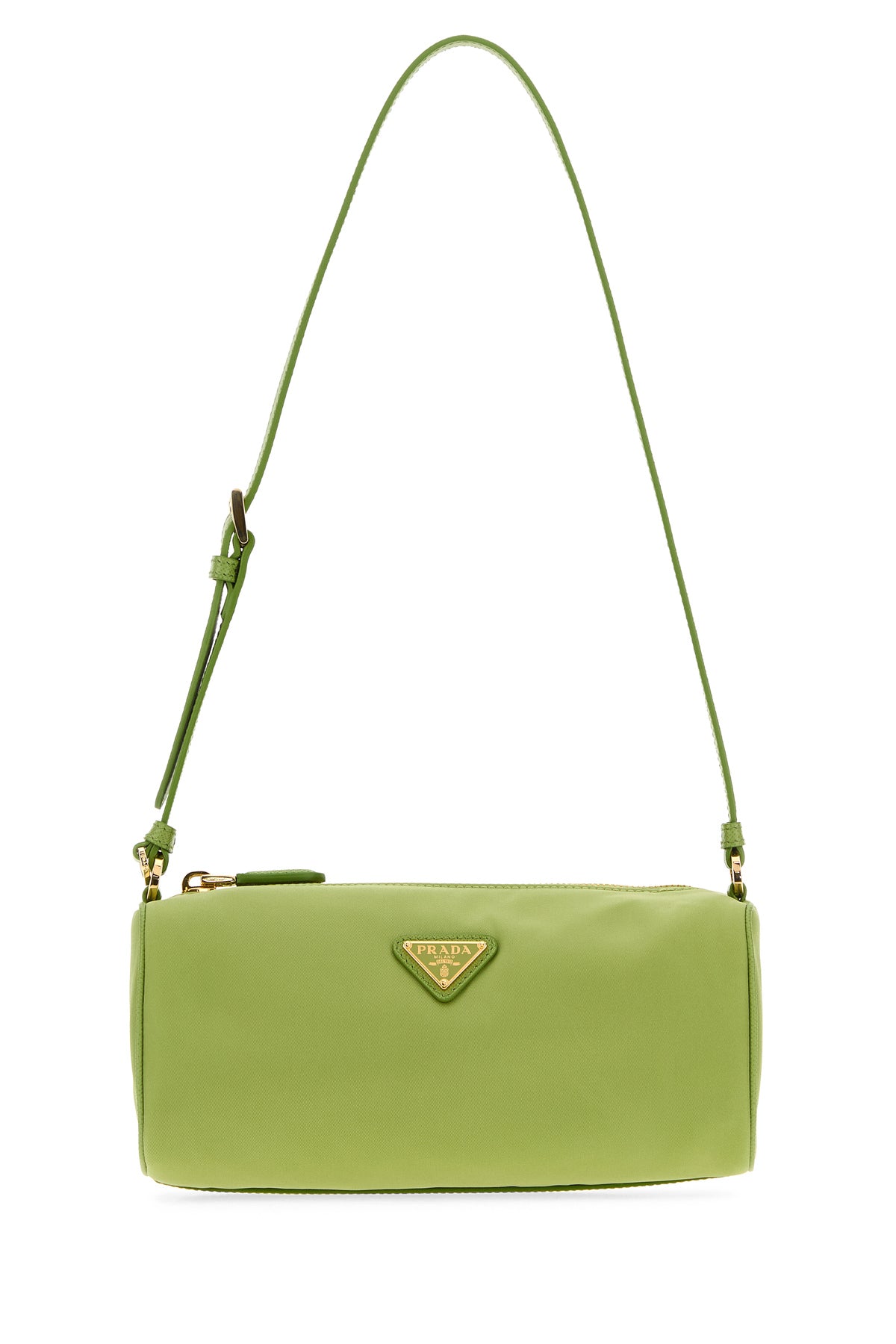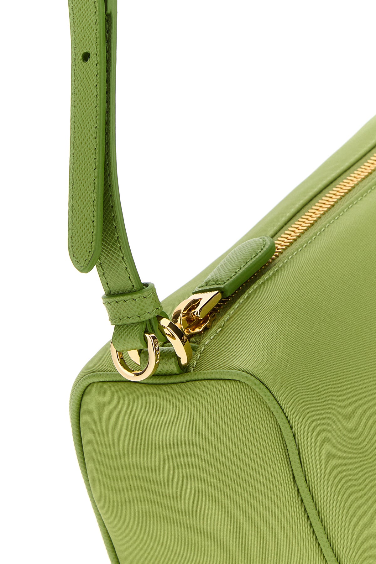 Beauty case realized in nylon enriched by iconic metal and leather logoed triangle at the front.